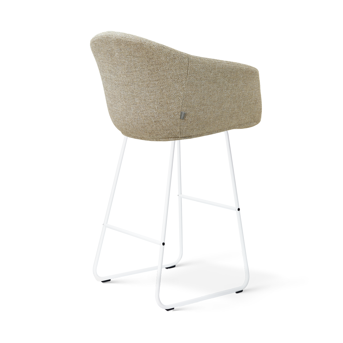 De Nino-Otis barkruk in taupe met wit onderstel straalt rust en stijl uit. De zachte stoffering en ergonomische armleuningen zorgen voor een comfortabele zitervaring, terwijl de voetsteun en stevige poten stabiliteit bieden. Het witte frame geeft een lichte, Scandinavische uitstraling, perfect voor moderne, natuurlijke of Japandi interieurs