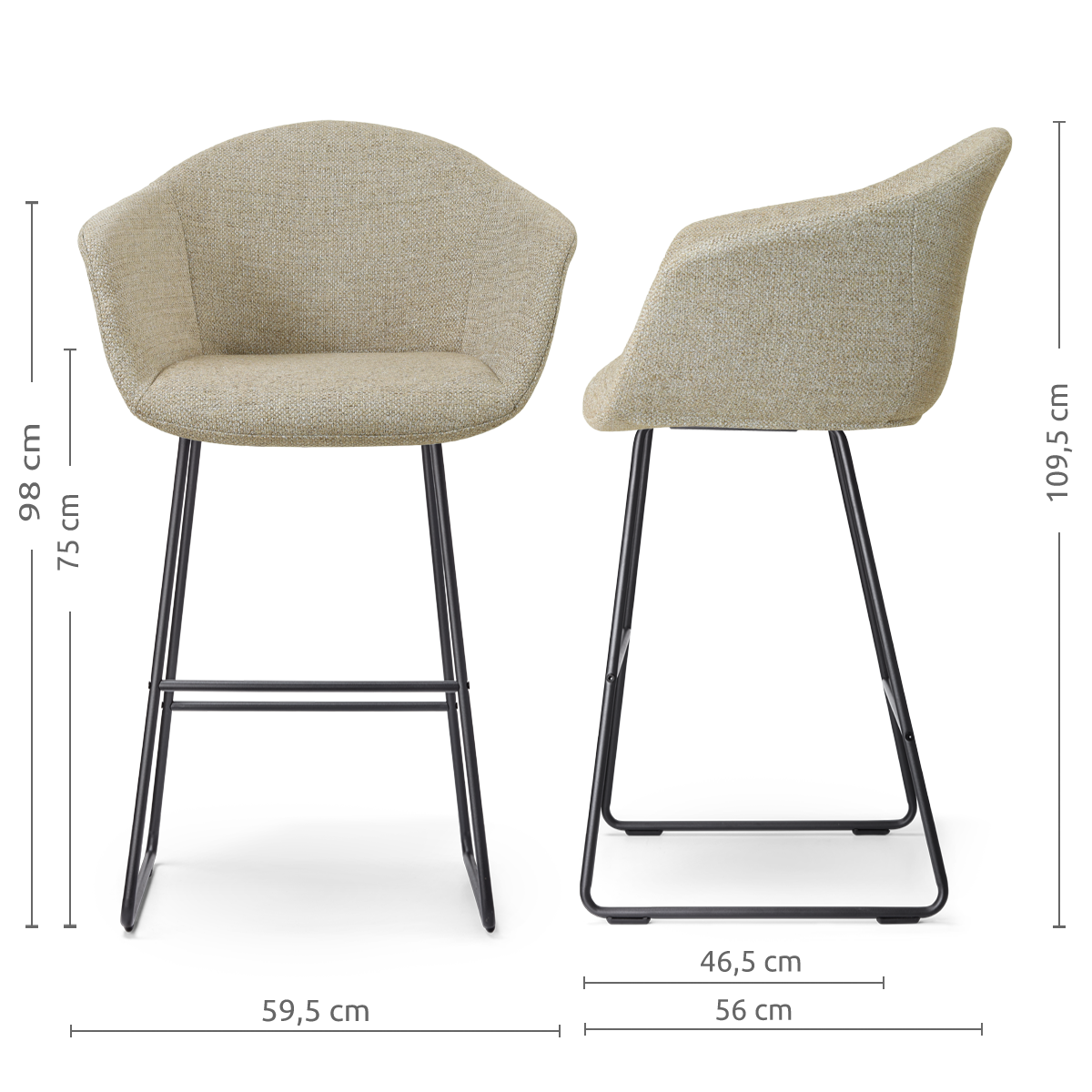 - Dankzij de hoogte van 75 cm geschikt voor aan een bar of hoge eettafel met een hoogte van ca. 98-105 cm.