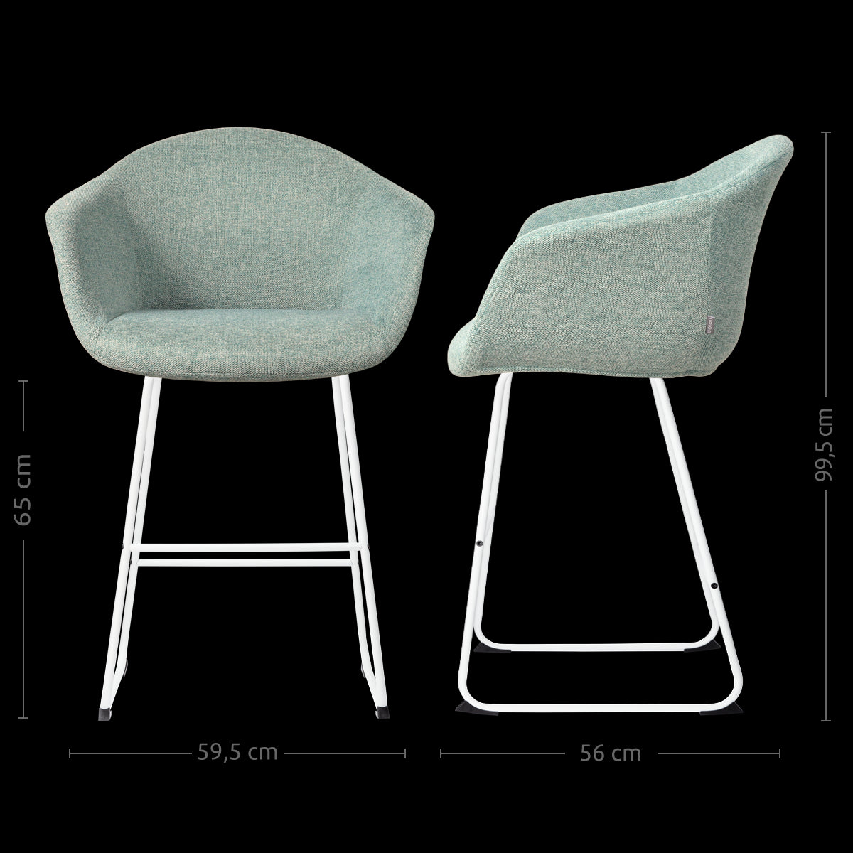 - Dankzij de zithoogte van 65 cm geschikt voor aan een kookeiland of keukenblad met een hoogte van ca. 88-95 cm