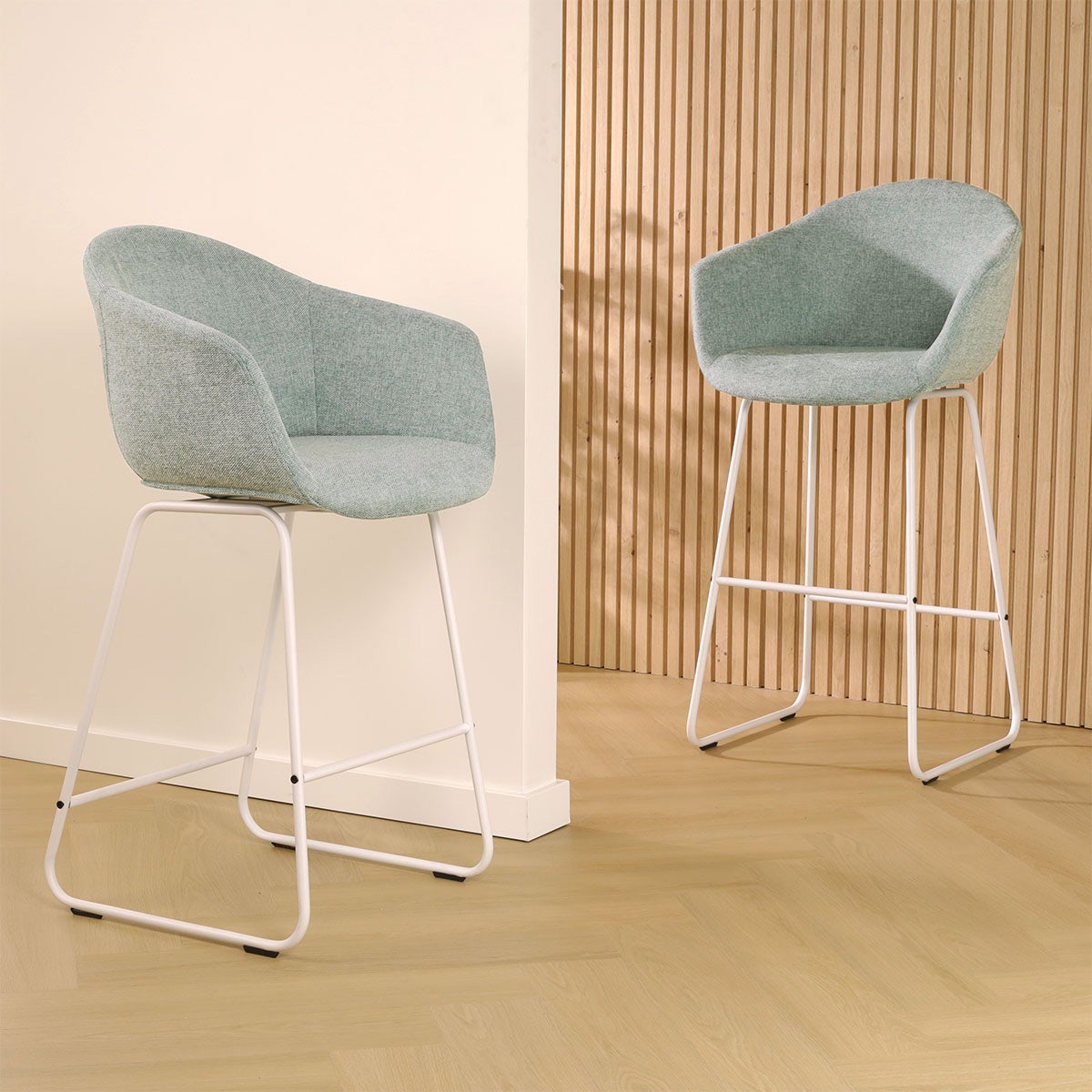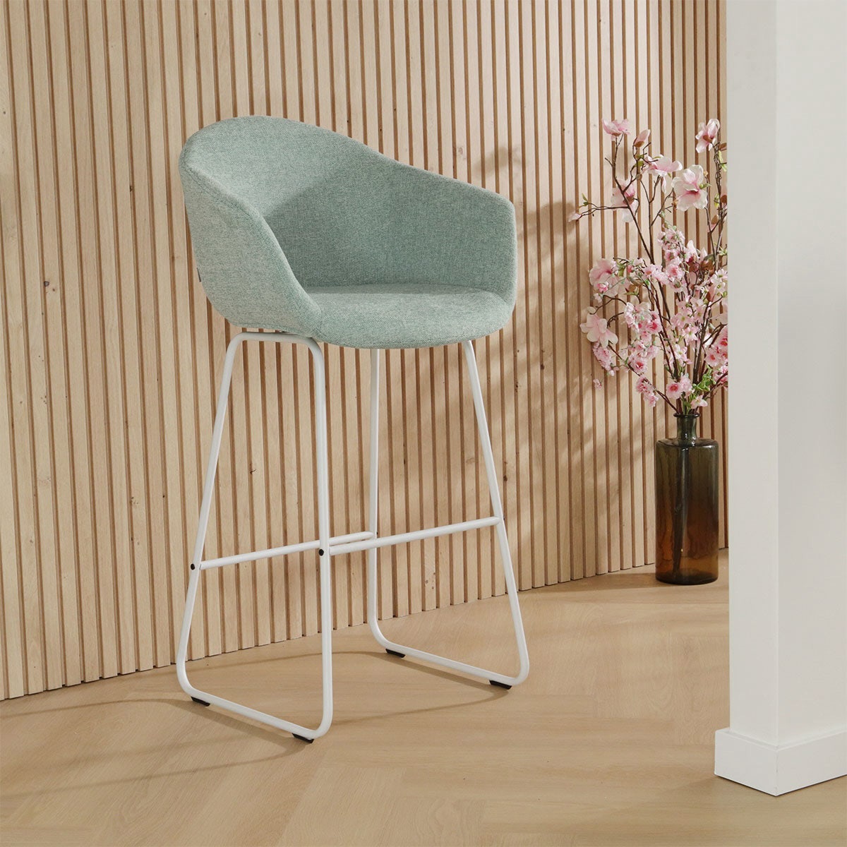 Deze kookeiland barkruk combineert een zachte stoffen zitting met een modern metalen onderstel en is daarmee een stijlvolle blikvanger in de keuken. Het metalen frame heeft een minimalistische en luchtige uitstraling. Dankzij de voetsteun op het frame heb je de keuze om je benen losjes te laten hangen of stevig neer te zetten. De ronde kuipzitting is ontworpen met armleuningen en een zachte stoffen bekleding om extra comfort te bieden terwijl je aan de bar zit. Met de zes verschillende kleuren stof kan je deze stijlvolle barkruk helemaal aan jouw interieur aanpassen, en ook het onderstel is in twee kleuren verkrijgbaar. Met een zithoogte van 65 cm is deze barkruk met armleuning geschikt voor aan een kookeiland. Zie jij jezelf al zitten met een kopje koffie?
