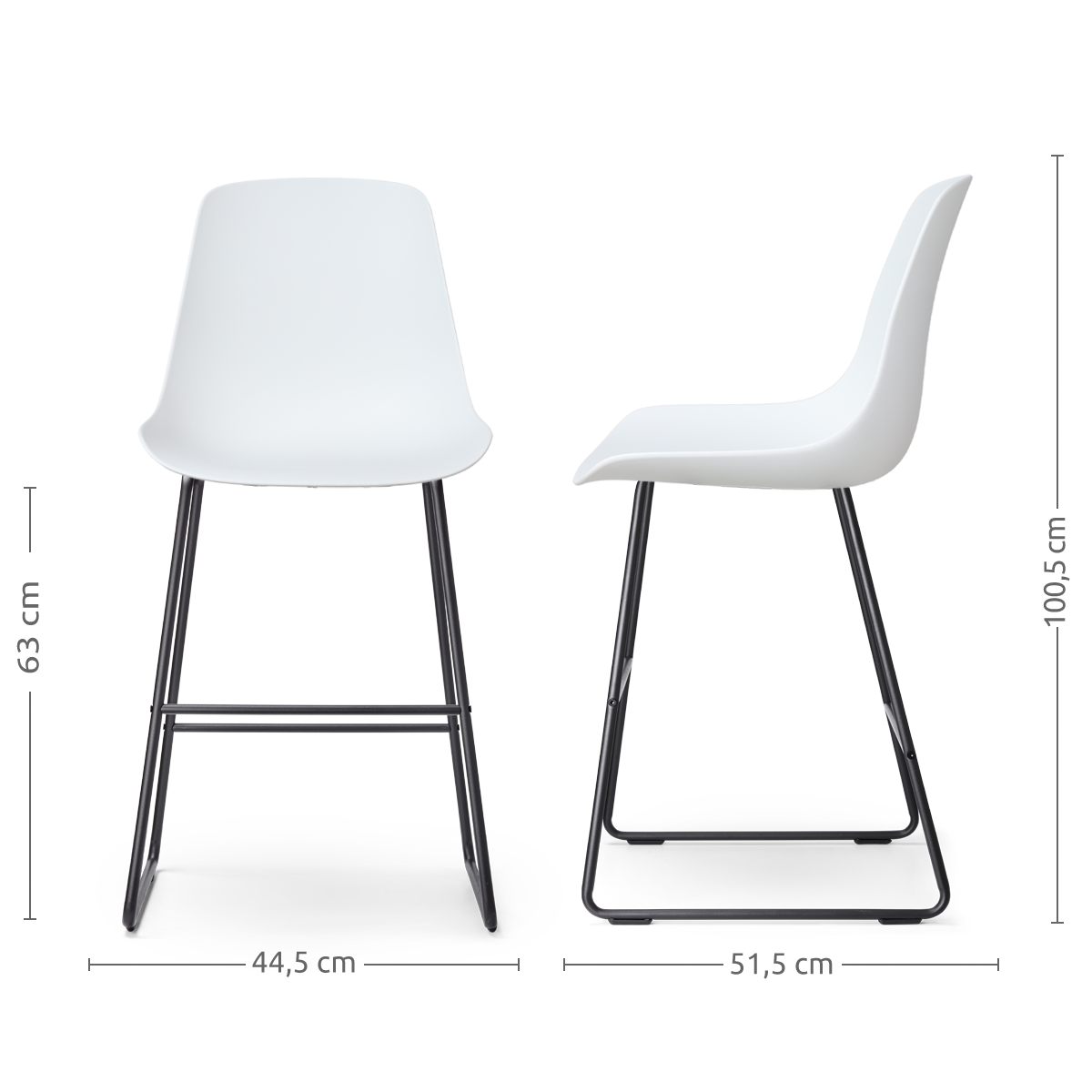 - Dankzij de zithoogte van 63 cm geschikt voor aan een kookeiland of keukenblad met een hoogte van ca. 88-95 cm