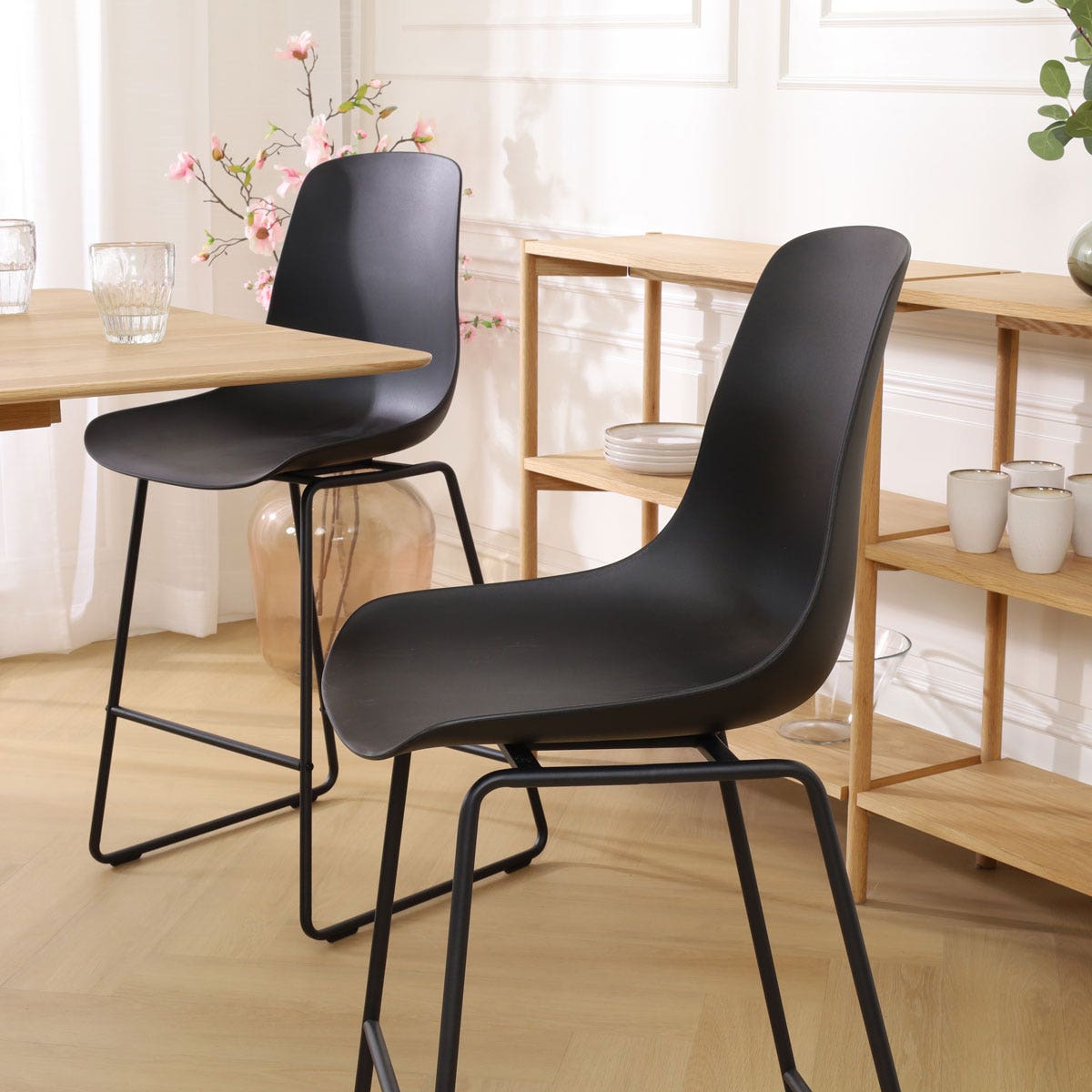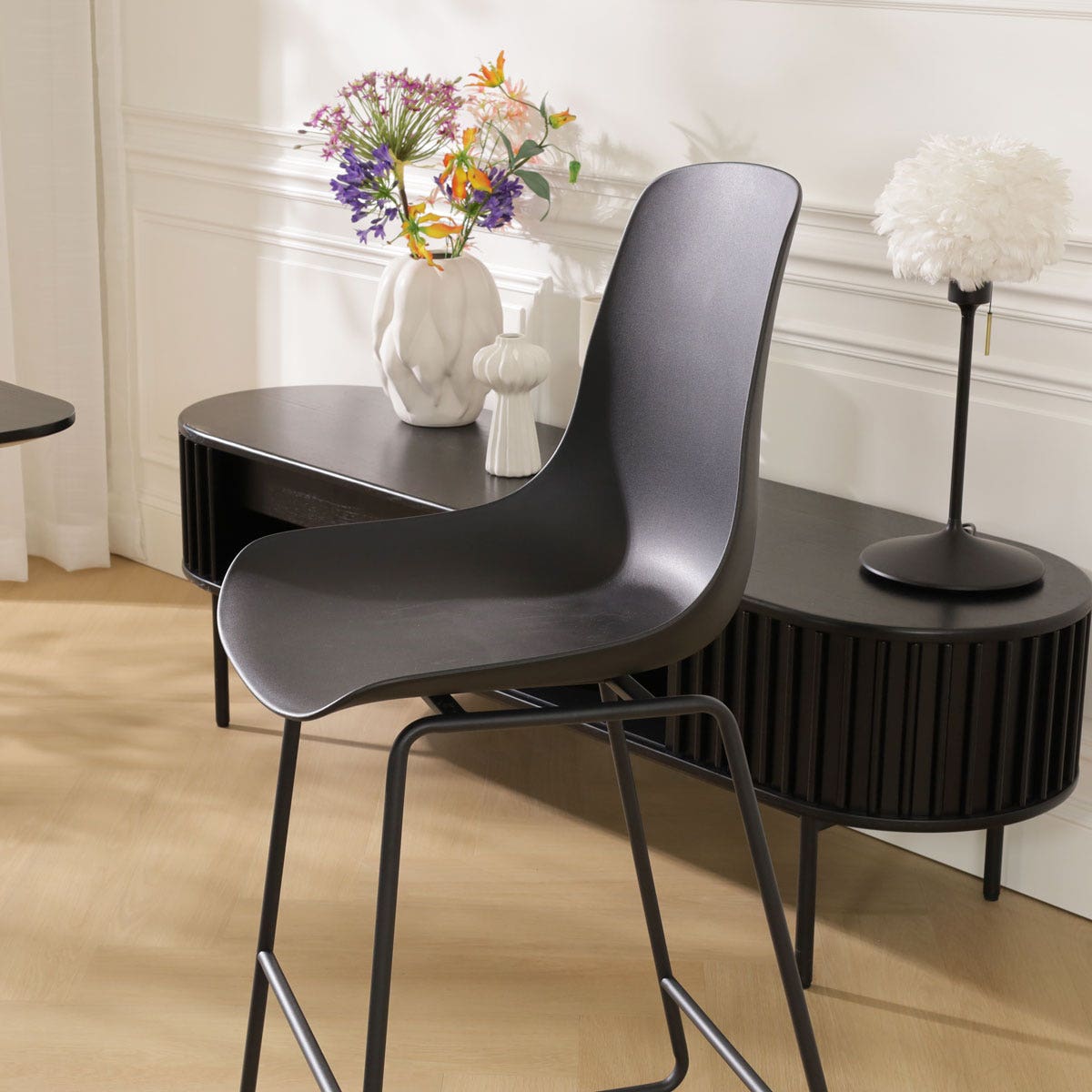 Deze barkruk heeft een modern en minimalistisch design maar is tegelijkertijd verrassend comfortabel. De kuipzitting is gemaakt van kunststof, wat een duurzaam en onderhoudsvriendelijk materiaal is. Per ongeluk geknoeid? Deze kunststof barkruk maak je in een handomdraai weer schoon. Het metalen onderstel heeft een strak design en is ontworpen met een voetsteun voor extra comfort. Met een zithoogte van 73 cm is deze moderne barkruk geschikt om te gebruiken aan een hoge bar of eettafel. Dankzij het model zonder armleuningen neemt hij minder ruimte in en past hij zonder probleem onder ieder tafelblad. Kies tussen wit of zwart voor zowel de kuip als het frame en geniet van zorgeloze diners in huis. Wil je nog iets zachter zitten? Combineer deze kunststof barkruk dan met het Fem zitkussen van Nolon, dat perfect aansluit op het zitvlak en verkrijgbaar is in een breed scala aan kleuren en materialen.