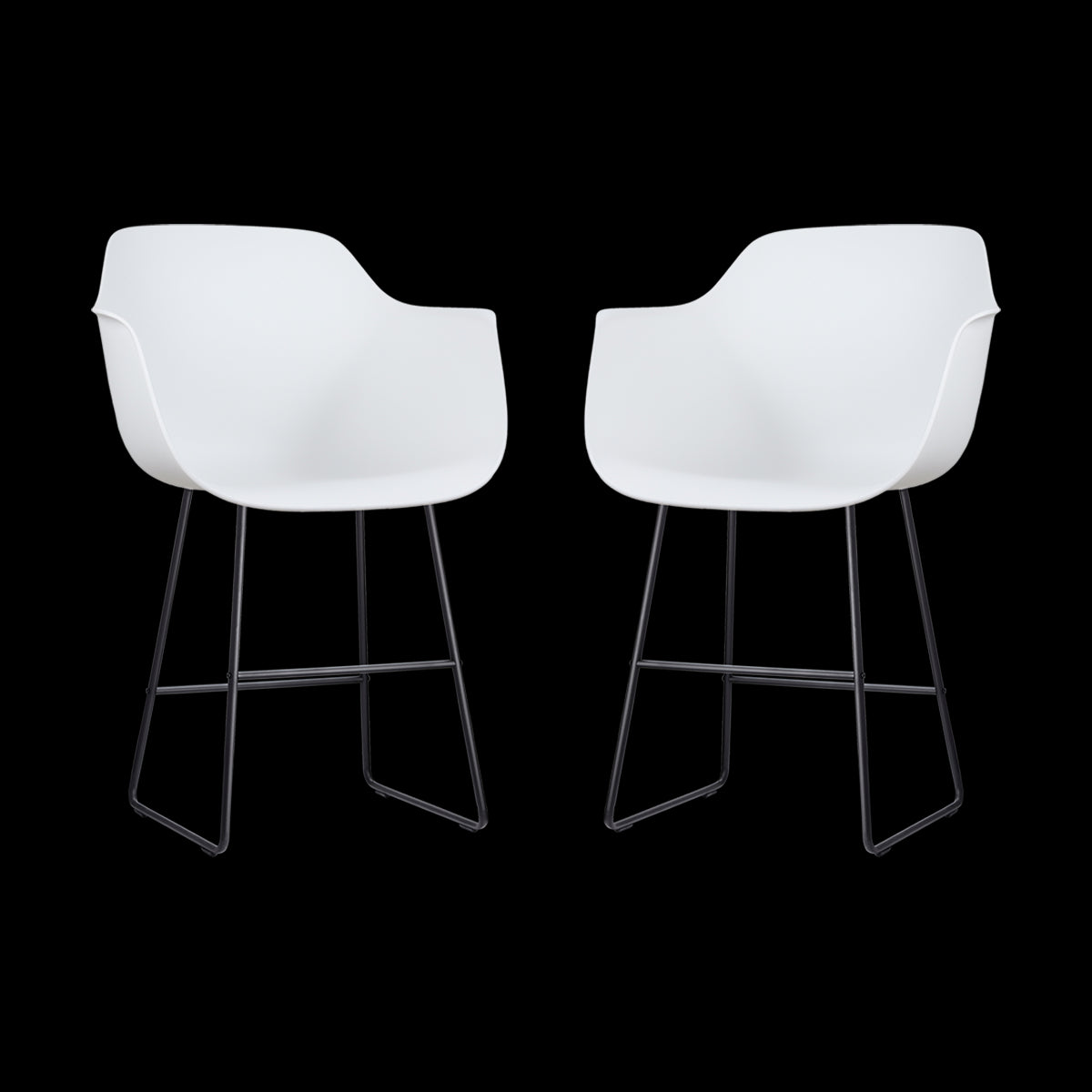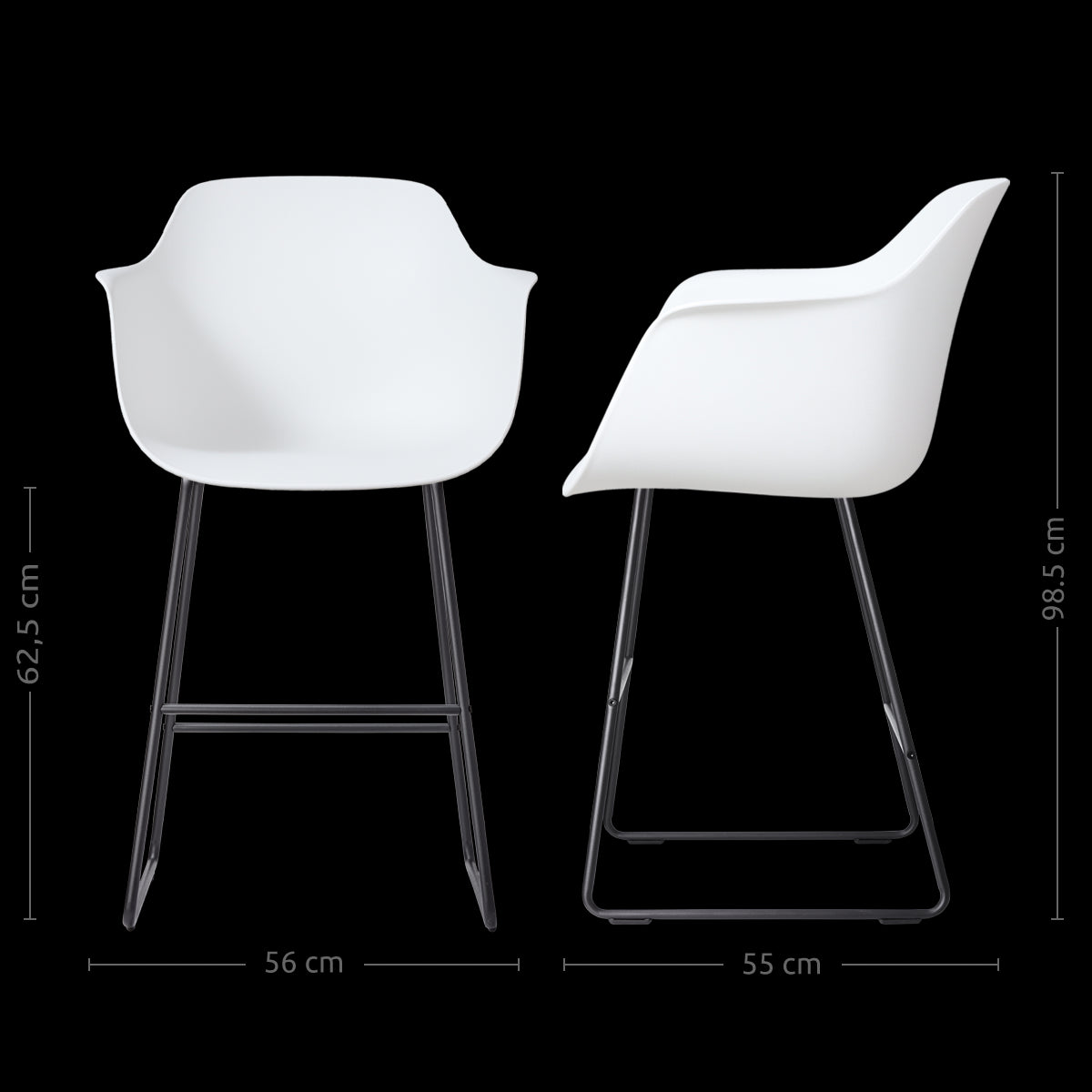 Deze barkrukken hebben een modern metalen frame met een slank design en een voetsteun. De zitting is gemaakt van kunststof, wat naast gemakkelijk te onderhouden ook nog eens duurzaam en slijtvast is. Dit materiaal is bovendien altijd enigszins flexibel, wat het zitcomfort van deze barkruk verhoogt. De kunststof kuipzitting is daarnaast ook ontworpen met armleuningen om je lichaam optimaal te ondersteunen tijdens het dineren of borrelen. Met een zithoogte van 62,5 cm is deze barkruk perfect geschikt voor aan het kookeiland in de keuken. Heb je een hogere barkruk nodig? Deze barkruk is ook verkrijgbaar met een zithoogte van 72,5 cm.