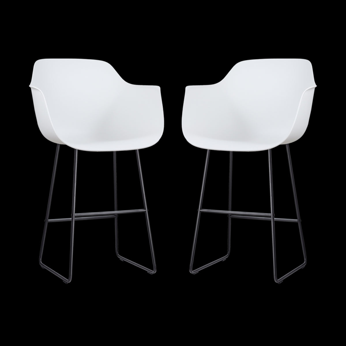 Deze kunststof barkruk is naast functioneel ook nog eens erg comfortabel. De kuipzitting is namelijk ontworpen met een ergonomische vorm en armleuningen om je armen te laten rusten. Dankzij de schuine rugleuning kan je een ontspannen houding aannemen en de flexibele kunststof kuip maakt het hoge zitcomfort helemaal af. Het metalen frame heeft een strak design en is voorzien van een voetsteun. Met een zithoogte van 72,5 cm is deze kruk geschikt om te gebruiken aan een bar of hoge eettafel. Maak een keuze tussen wit of zwart voor zowel het frame als de kunststof zitting en geniet van gezellige diners op hoogte. Zit je nog wel graag iets zachter? Combineer deze kunststof barkruk dan met het Fem zitkussen van Nolon.