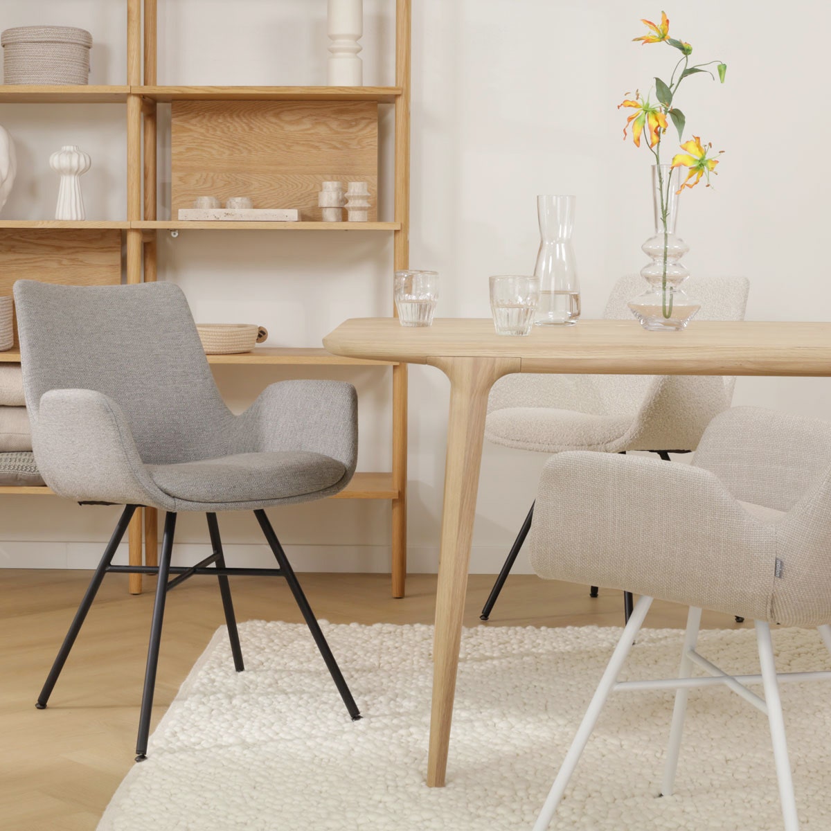 Creëer een gezellige eethoek met de moderne Noa-Eef eetkamerstoel met armleuningen van Nolon.