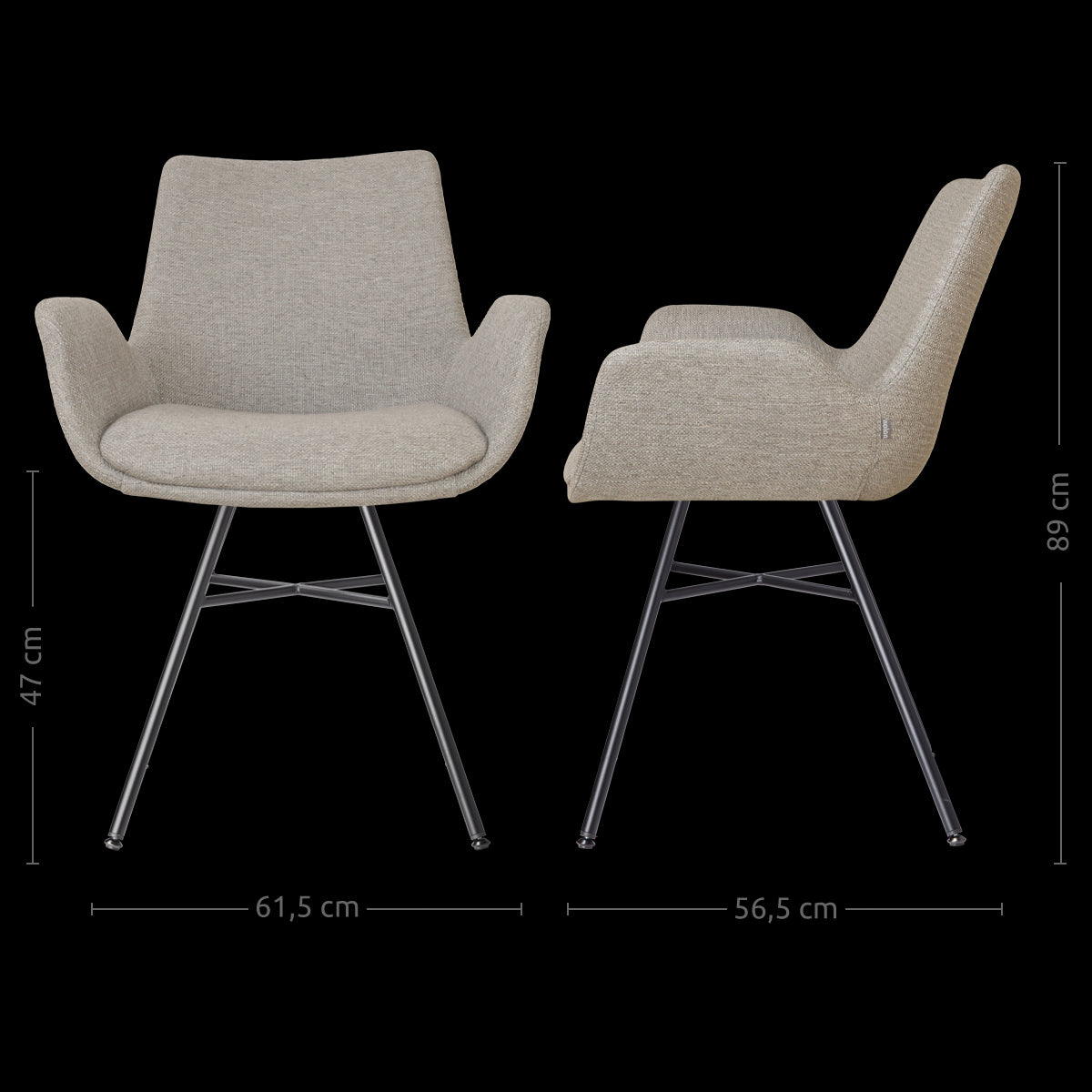 - Deze stoel heeft oplopende armleuningen van 64,5 - 66,5 cm. Controleer altijd even of deze wel onder de tafel passen.