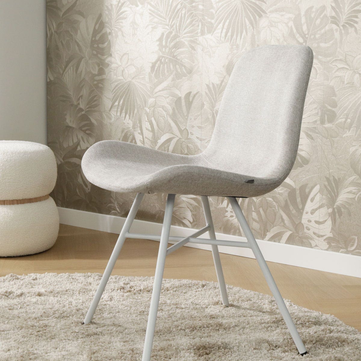 De zitting van deze eetkamerstoel heeft comfortabele rondingen en een gevleugeld zitvlak voor extra comfort. Het sterke houten binnenwerk zorgt voor een stevige zit en een actieve zithouding aan de eettafel. Het strakke, moderne onderstel is gemaakt van metaal en heeft een kruisverbinding tussen de poten. De voetpootjes aan het einde van de poten zijn verstelbaar zodat de stoel op elke ondergrond stevig staat. De Noa-Fé eetkamerstoel is bekleed met zachte, hoogwaardige stof en is verkrijgbaar in maar liefst zeven verschillende kleuren en materialen. Of je nu op zoek bent naar een tijdloze beige eetkamerstoel of een trendy exemplaar met bouclé of teddystof, de Noa-Fé stoel is altijd een goede keuze.