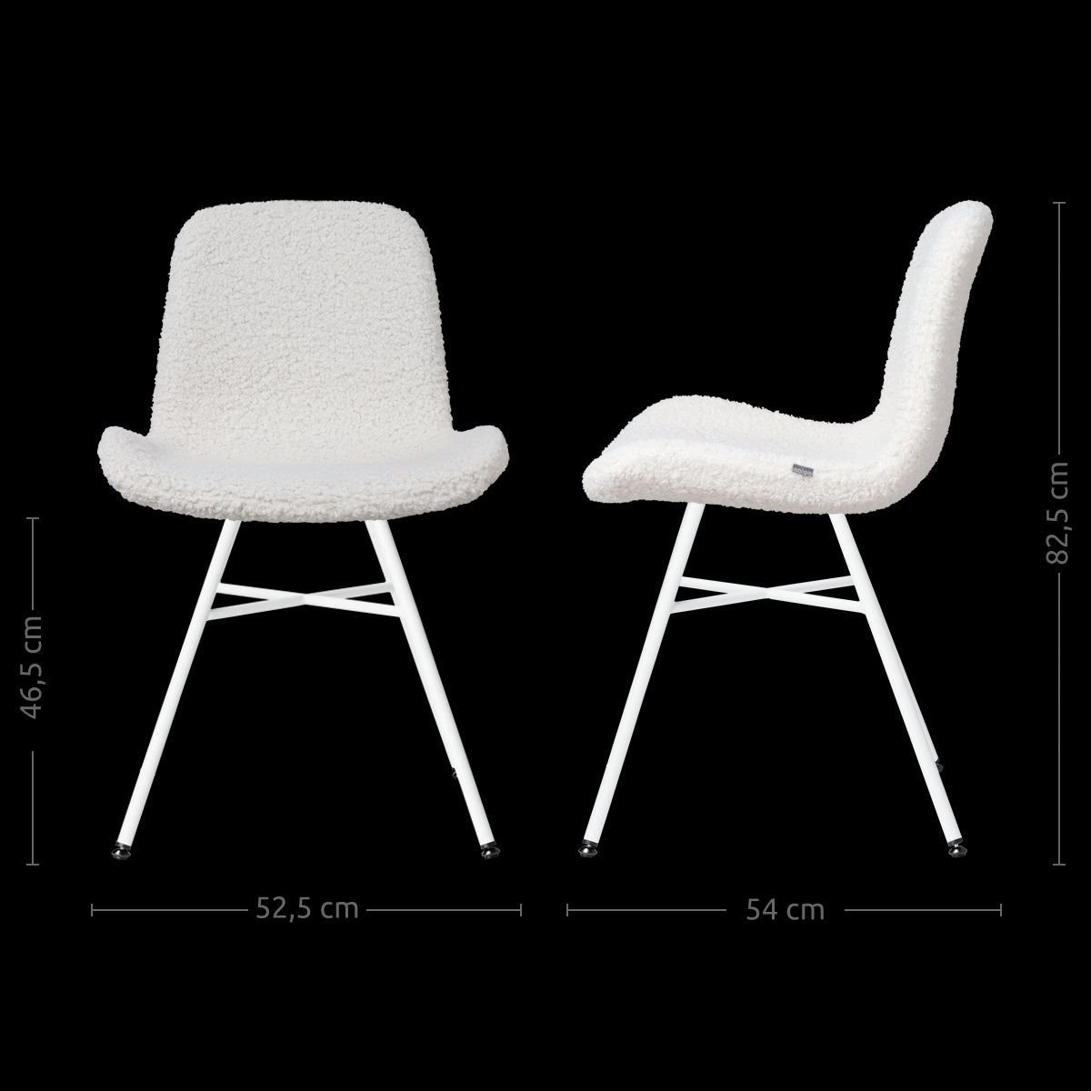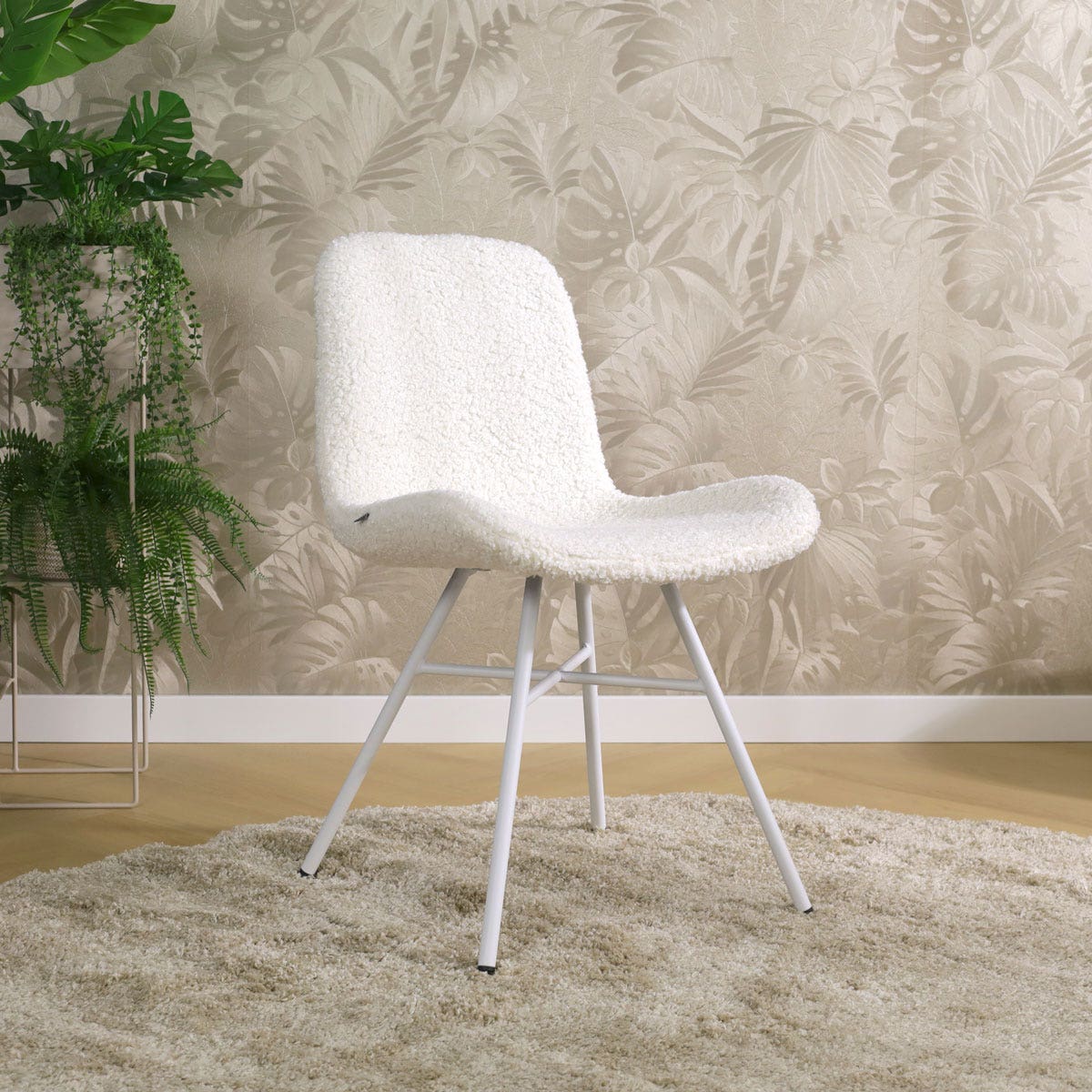 De zitting van deze eetkamerstoel heeft comfortabele rondingen en een gevleugeld zitvlak voor extra comfort. Het sterke houten binnenwerk zorgt voor een stevige zit en een actieve zithouding aan de eettafel. Het strakke, moderne onderstel is gemaakt van metaal en heeft een kruisverbinding tussen de poten. De voetpootjes aan het einde van de poten zijn verstelbaar zodat de stoel op elke ondergrond stevig staat. De Noa-Fé eetkamerstoel is bekleed met zachte, hoogwaardige stof en is verkrijgbaar in maar liefst zeven verschillende kleuren en materialen. Of je nu op zoek bent naar een tijdloze beige eetkamerstoel of een trendy exemplaar met bouclé of teddystof, de Noa-Fé stoel is altijd een goede keuze.