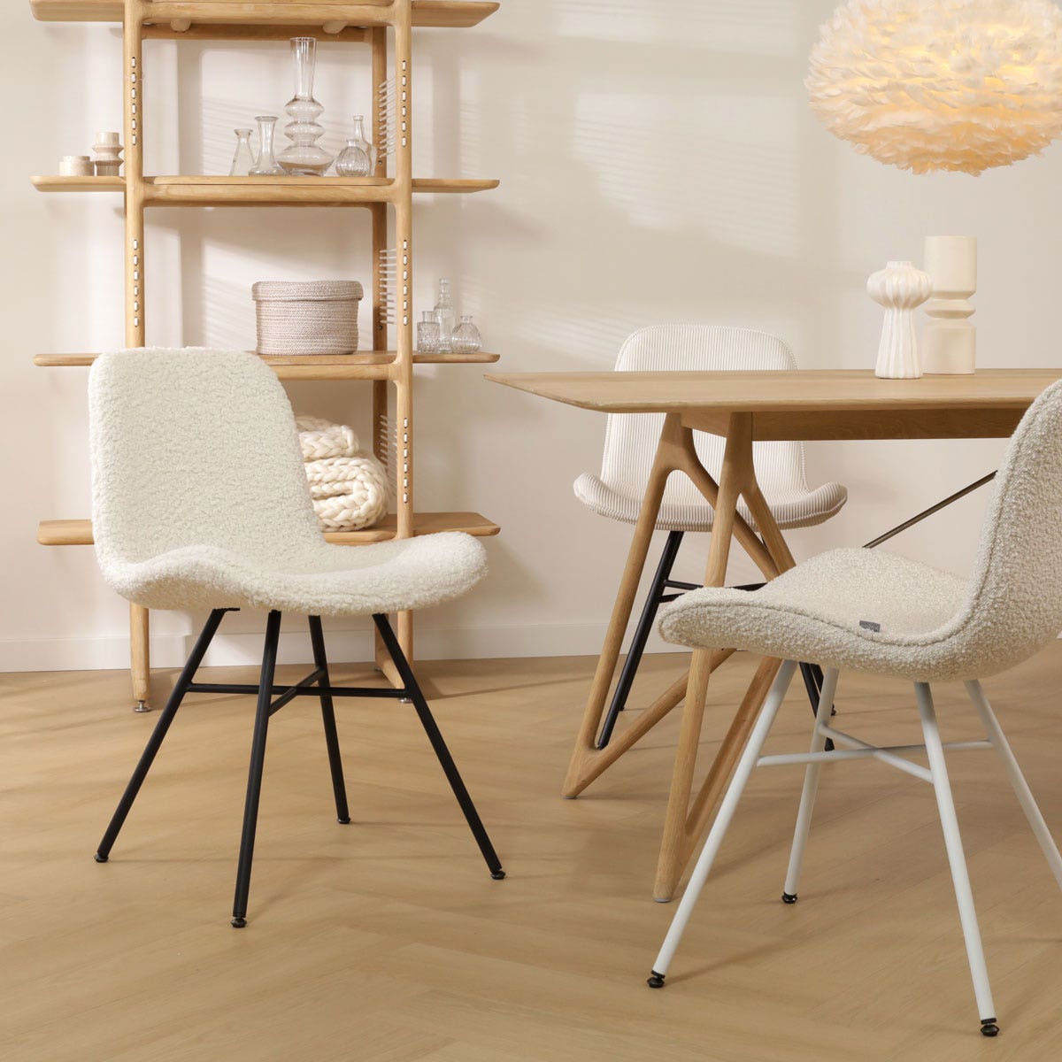 - De ribstof en teddystof bekleding zorgt voor een trendy touch in de eethoek