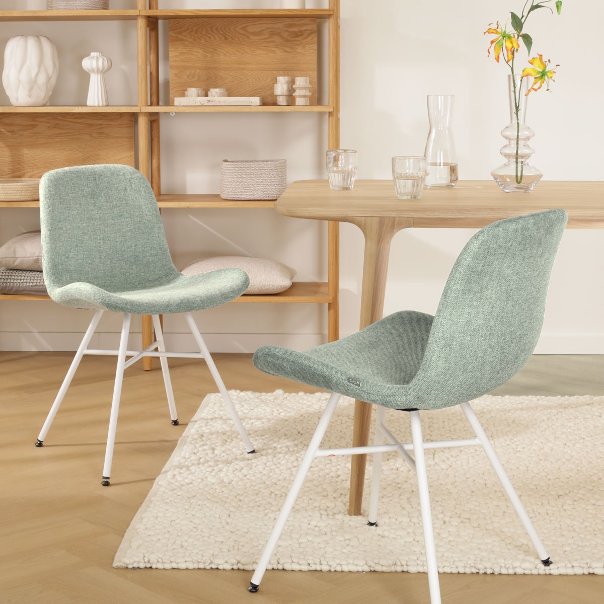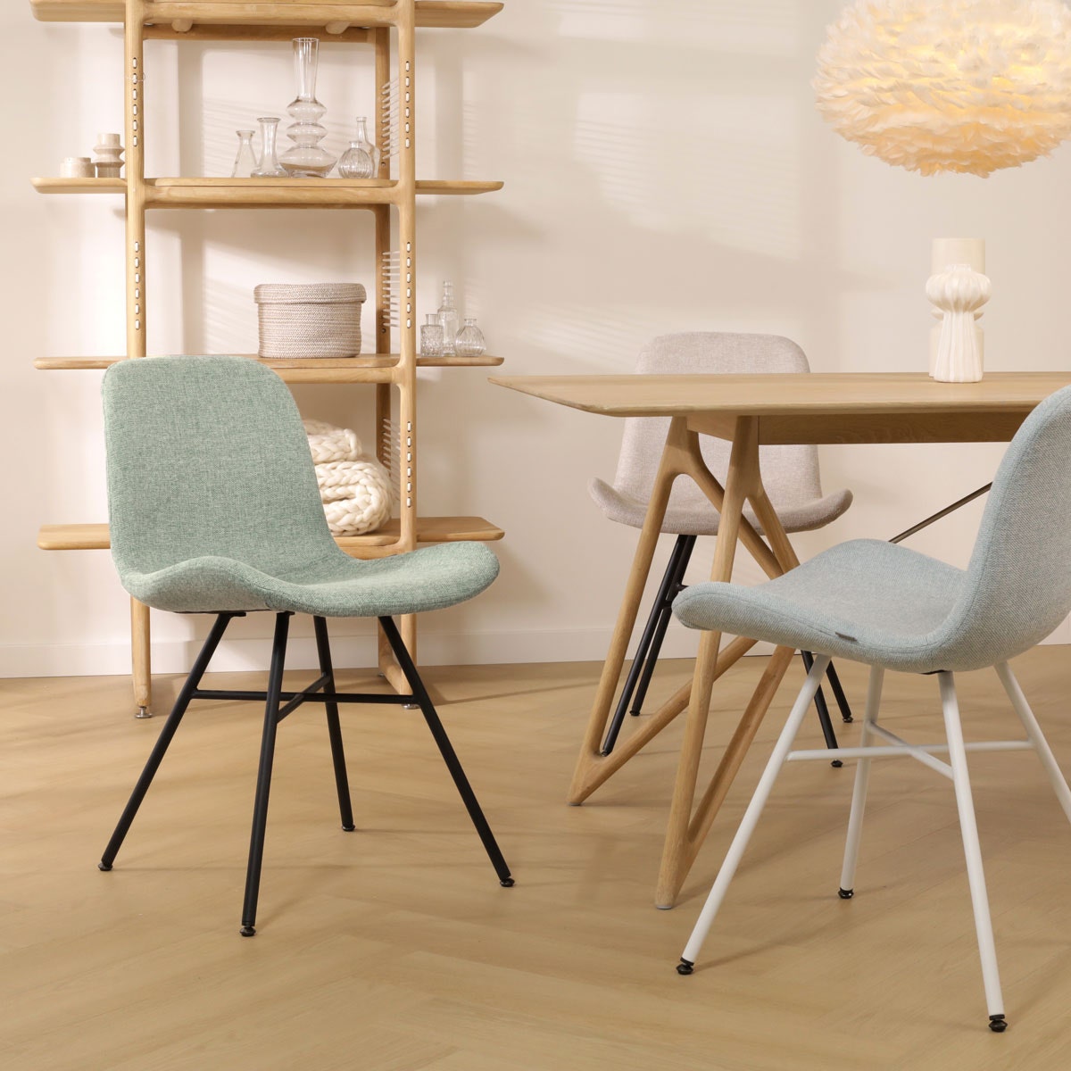 - De ribstof en teddystof bekleding zorgt voor een trendy touch in de eethoek