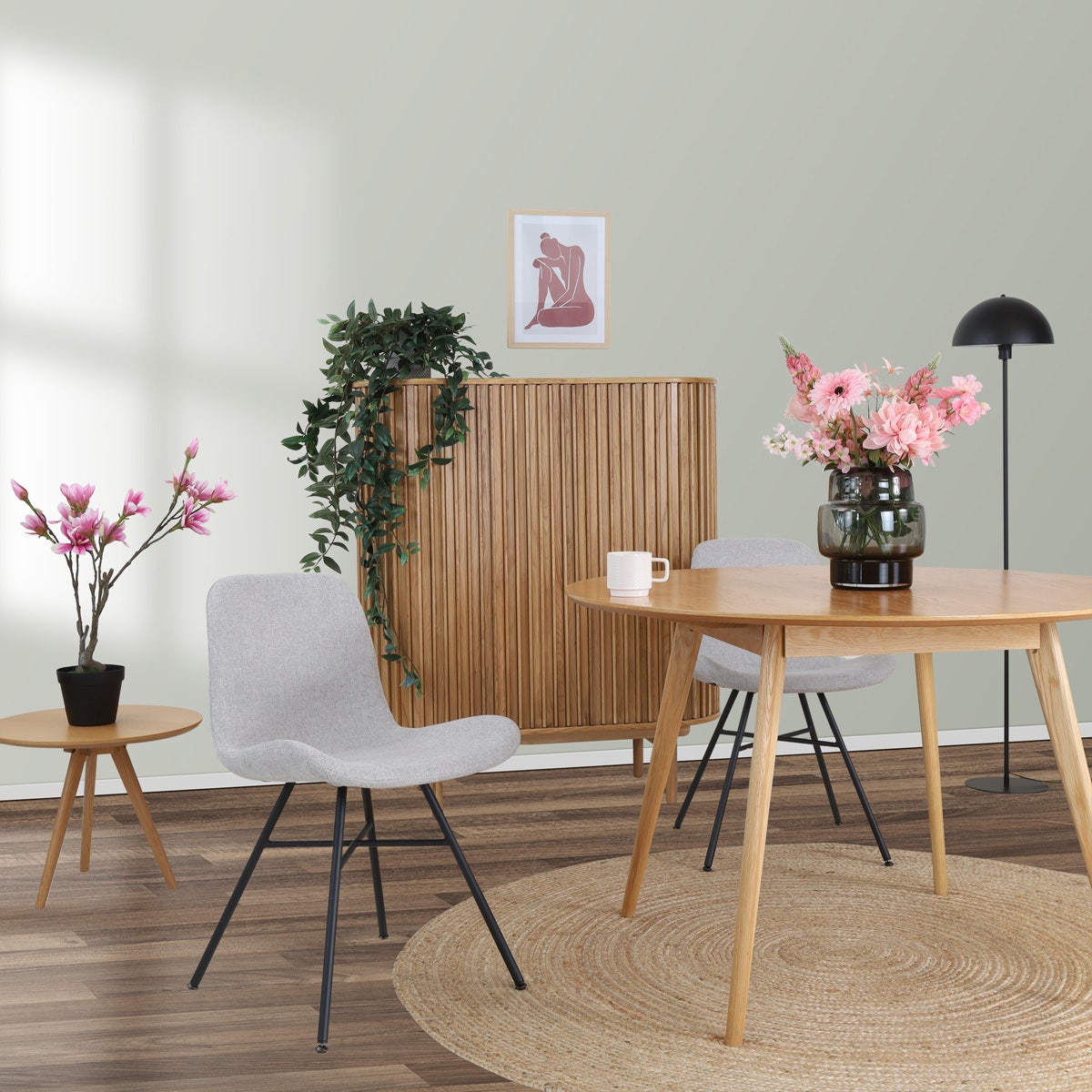 - De ribstof en teddystof bekleding zorgt voor een trendy touch in de eethoek