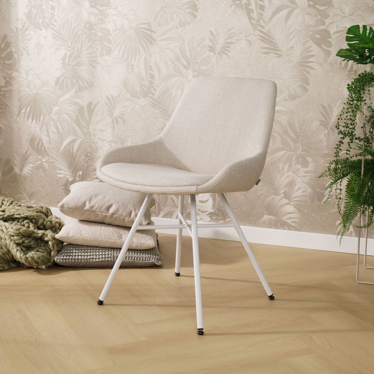 De Noa-Isa eetkamerstoel in beige met een wit onderstel is een moderne toevoeging aan je interieur.