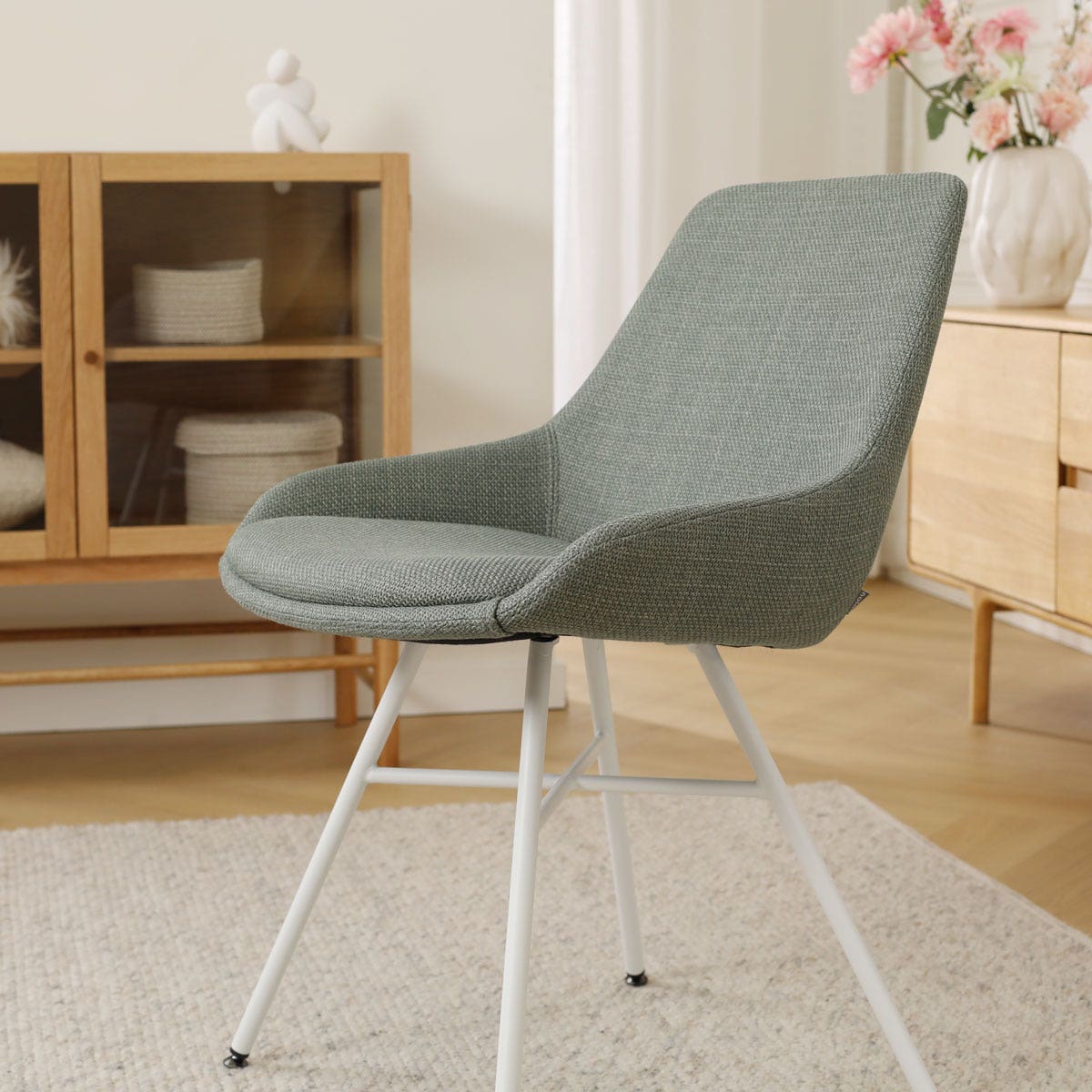 De Noa-Isa eetkamerstoel van Nolon is een moderne saliegroene stoel die stijlvol en functioneel is, perfect voor elke eigentijdse eetkamer.