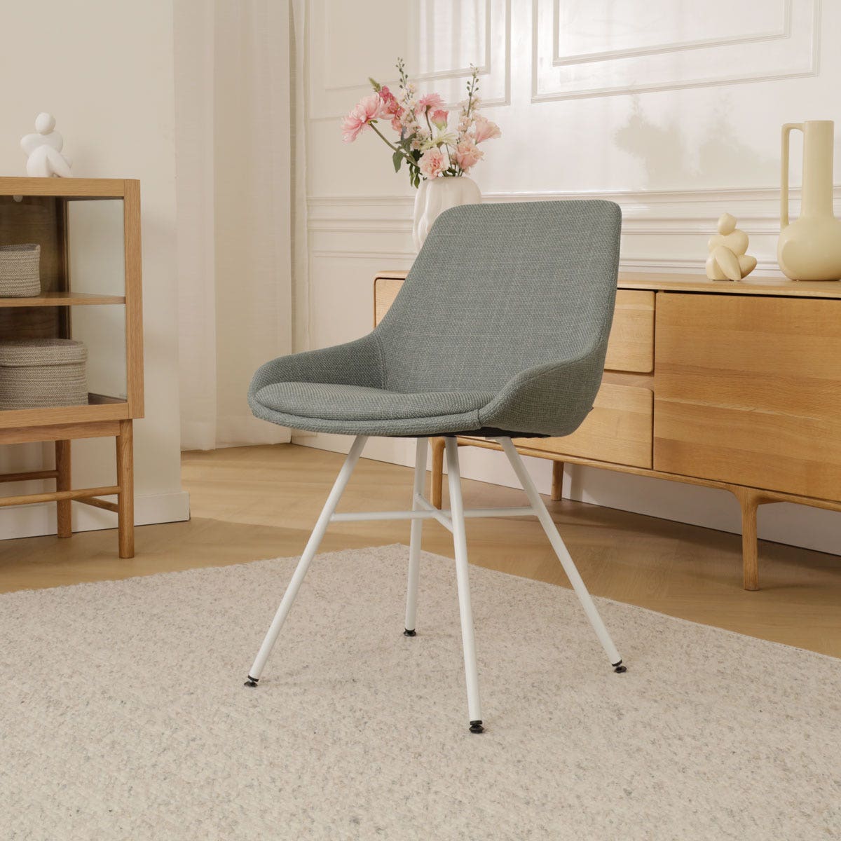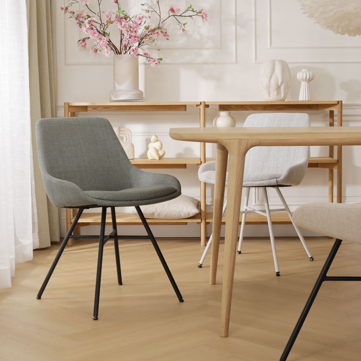 De Noa-Isa eetkamerstoel saliegroen - wit onderstel is onderdeel van een mix en match collectie. Dit betekent dat zowel het onderstel als de zitting van deze stoel in diverse andere combinaties verkrijgbaar zijn. Zo is de stoel met een wit onderstel en een zwart onderstel verkrijgbaar in de kleuren boucl√© beige, boucl√© taupe, beige, warm grijs, bruin, beige gem√™leerd en in het saliegroen. Deze varianten bieden de mogelijkheid om de stoel naar persoonlijke smaak en interieurstijl aan te passen, waardoor je makkelijk een samenhangende en stijlvolle eetkamer kunt creCreërren.