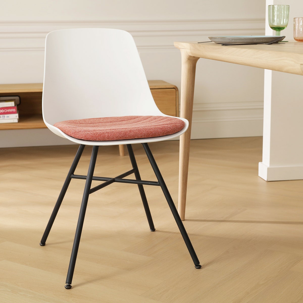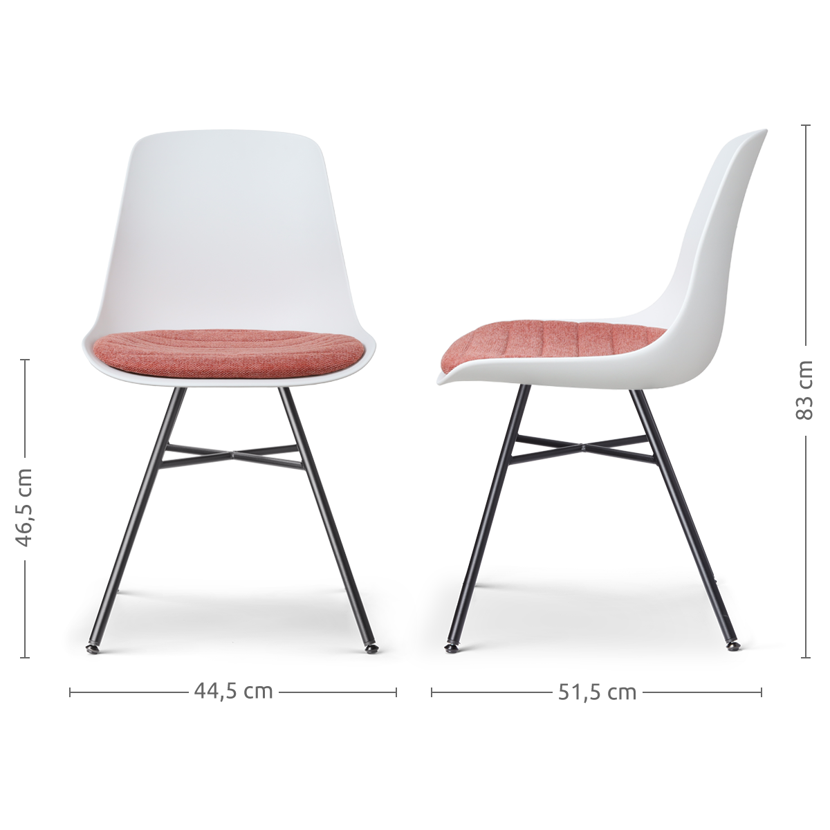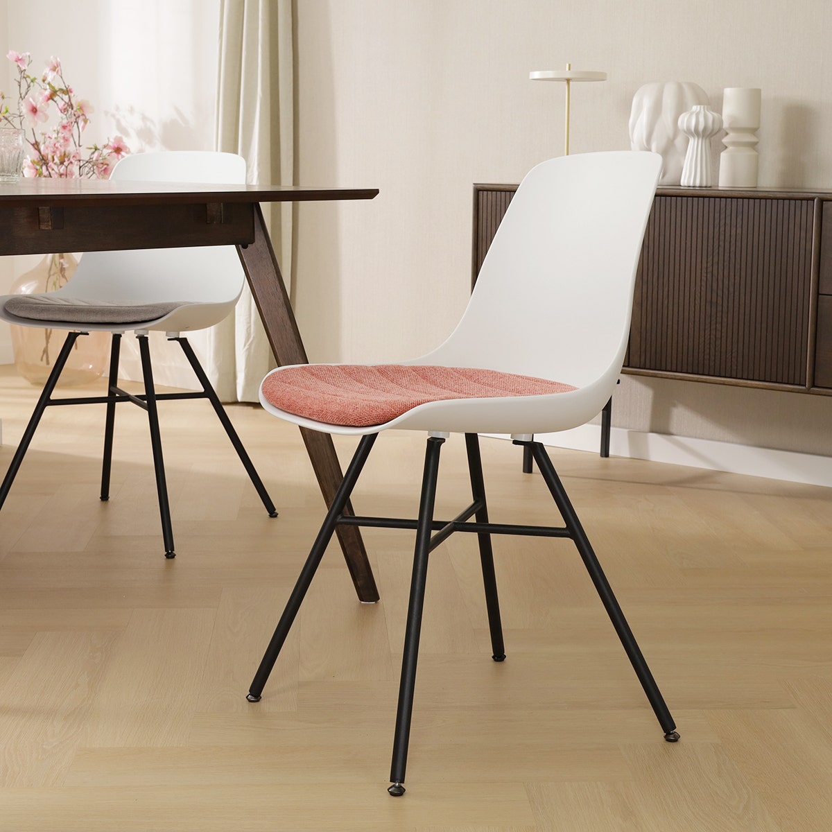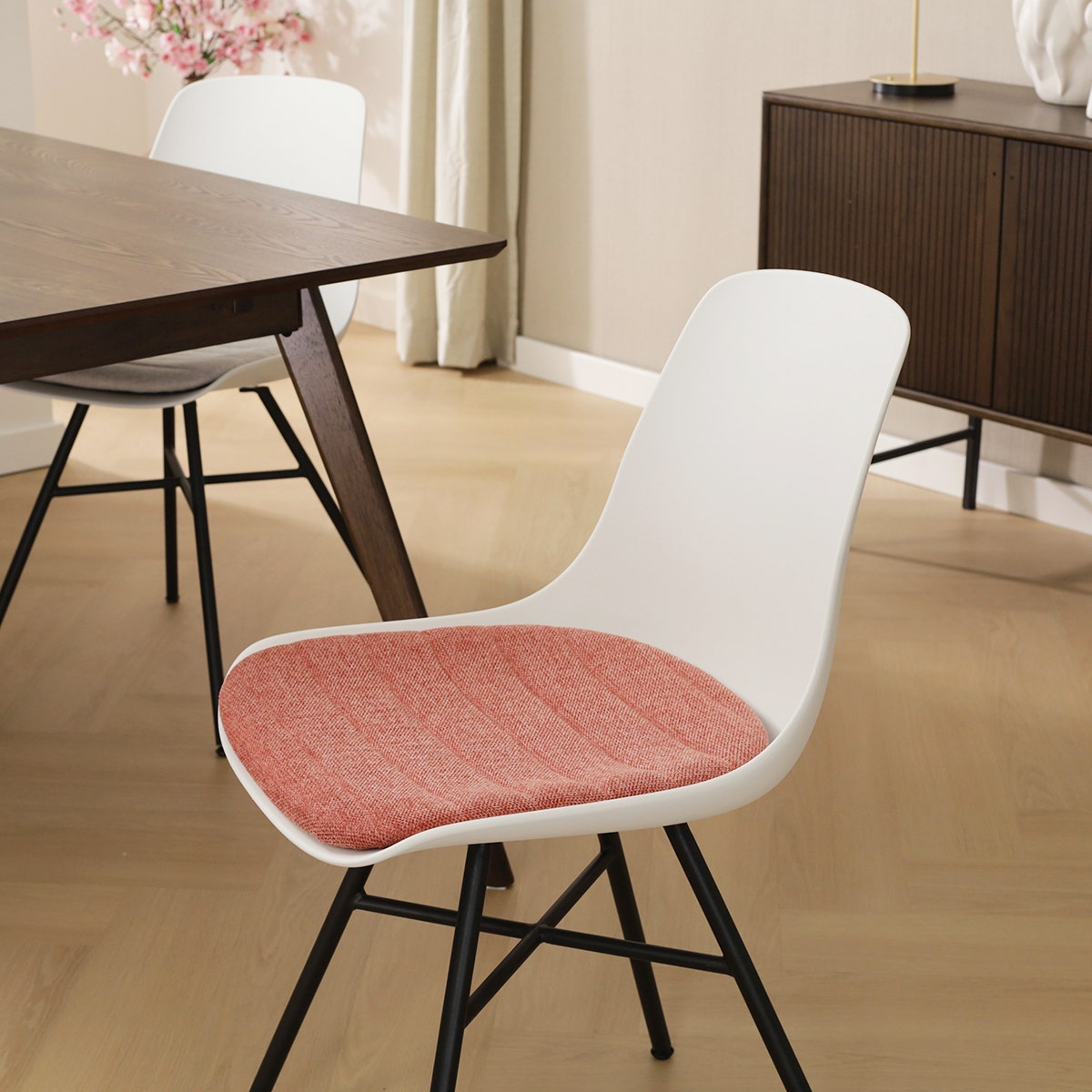 Deze stijlvolle eetkamerstoel heeft een metalen frame met kruisverbinding tussen de poten en verstelbare voetpootjes, zodat de stoel op elke ondergrond stabiel staat. De zitting is gemaakt van hoogwaardig kunststof om de stoel een moderne uitstraling en een onderhoudsvriendelijk en duurzaam karakter te geven. Het leuke aan deze eetkamerstoel is dat je zelf kan bepalen hoe de stoel eruit komt de zien. Je kan namelijk kiezen uit een wit en zwart onderstel, een witte en zwarte kunststof kuip én een vast zitkussen in vijf verschillende kleuren. Zo kan je de Noa-Liv eetkamerstoel helemaal aanpassen aan jouw wensen en eethoek!
