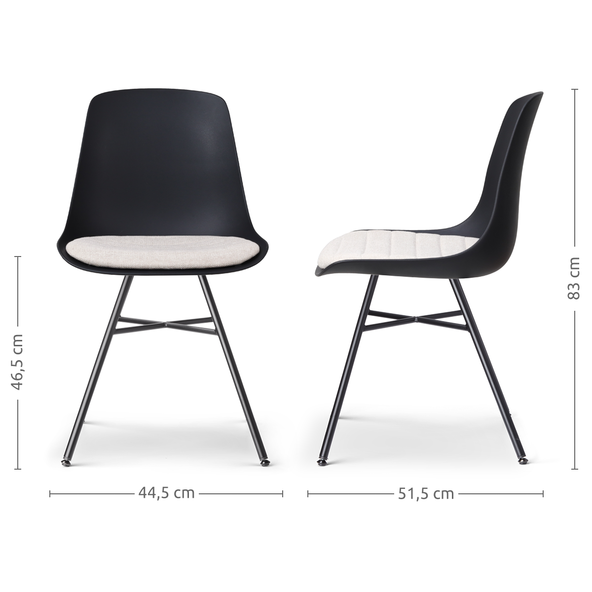 Deze stijlvolle eetkamerstoel heeft een metalen frame met kruisverbinding tussen de poten en verstelbare voetpootjes, zodat de stoel op elke ondergrond stabiel staat. De zitting is gemaakt van hoogwaardig kunststof om de stoel een moderne uitstraling en een onderhoudsvriendelijk en duurzaam karakter te geven. Het leuke aan deze eetkamerstoel is dat je zelf kan bepalen hoe de stoel eruit komt de zien. Je kan namelijk kiezen uit een wit en zwart onderstel, een witte en zwarte kunststof kuip én een vast zitkussen in vijf verschillende kleuren. Zo kan je de Noa-Liv eetkamerstoel helemaal aanpassen aan jouw wensen en eethoek!