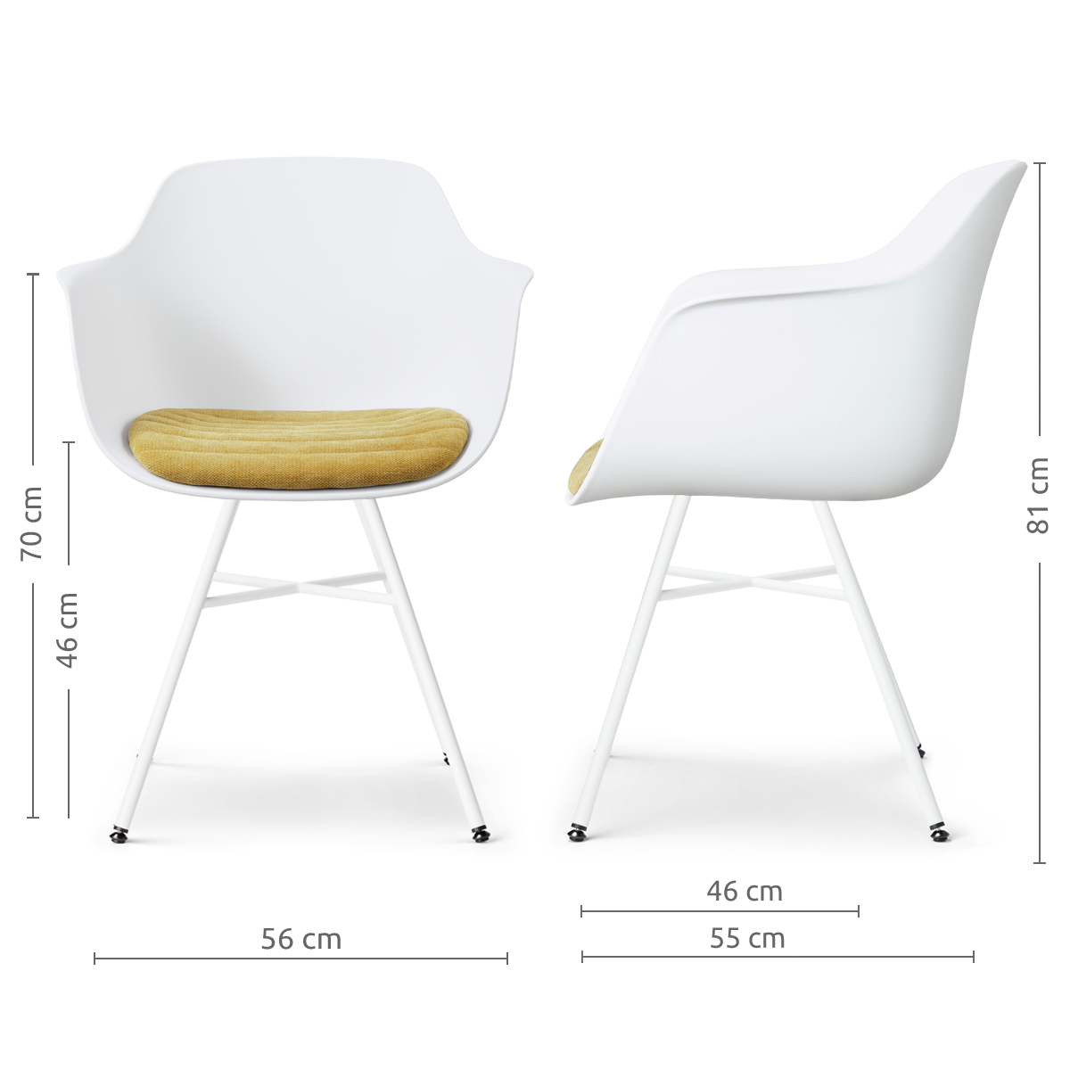 Het leuke is dat je deze stoel zelf kunt samenstellen. Je kunt namelijk kiezen uit meerdere kleuren vaste zitkussens om jouw perfecte kuipstoel samen te stellen. Hierdoor Creëer je een frisse uitstraling in je interieur. Bovendien heeft de zitting armleuningen die jouw extra comfort bieden. De eetkamerstoel is afgewerkt met een metalen onderstel met een kruis in het midden als leuk detail. Zie jij jezelf al genieten in deze comfortabele eetkamerstoel?