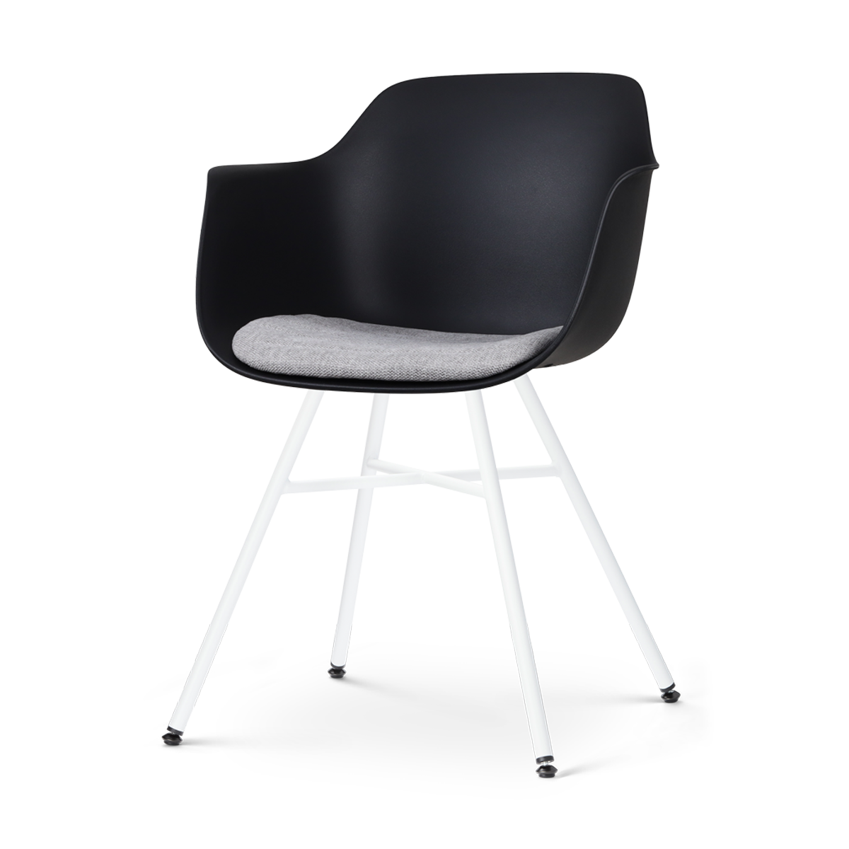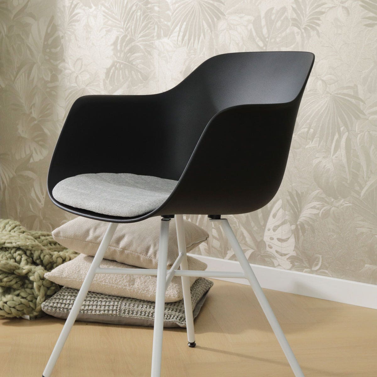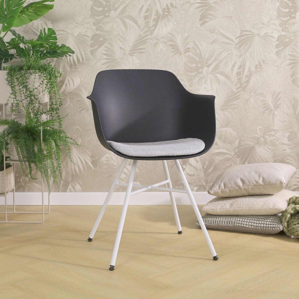 Het leuke is dat je deze stoel zelf kunt samenstellen. Je kunt namelijk kiezen uit meerdere kleuren vaste zitkussens om jouw perfecte kuipstoel samen te stellen. Hierdoor creëer je een frisse uitstraling in je interieur. Bovendien heeft de zitting armleuningen die jouw extra comfort bieden. De eetkamerstoel is afgewerkt met een metalen onderstel met een kruis in het midden als leuk detail. Zie jij jezelf al genieten in deze comfortabele eetkamerstoel?