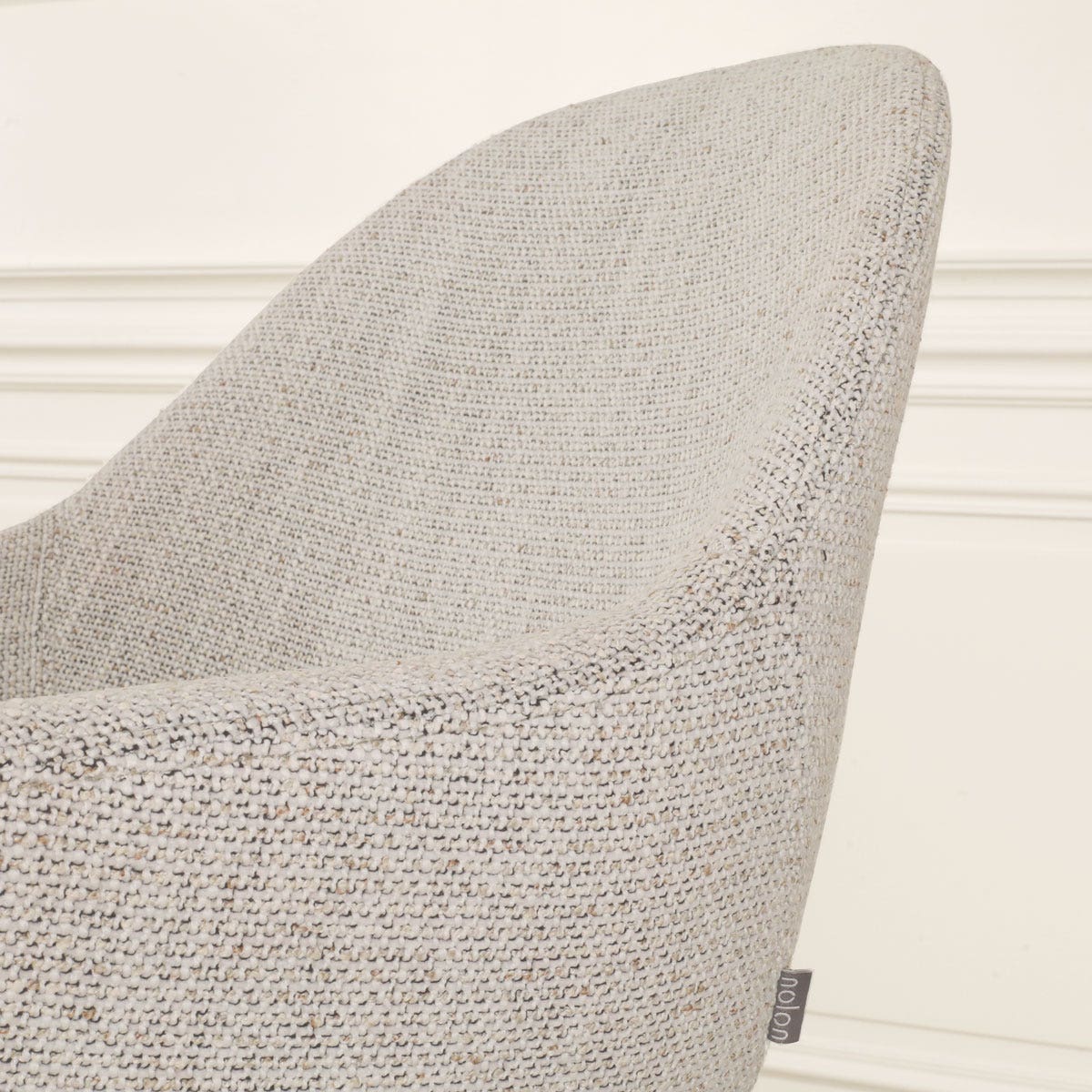 De Noa-Mae beige gemêleerde eetkamerstoel met witte poten van Nolon is onderdeel van een mix en match collectie. Dit betekent dat zowel het onderstel als de zitting van deze stoel in diverse andere combinaties verkrijgbaar zijn. De Mae zitting is verkrijgbaar in zes verschillende stoffen en kleuren, maar het metalen Noa onderstel kan ook gecombineerd worden met één van de andere zittingen van Nolon. De Mae zitting kan juist weer worden gecombineerd met alle andere onderstellen, zoals een draaibaar onderstel of een onderstel met houten poten.