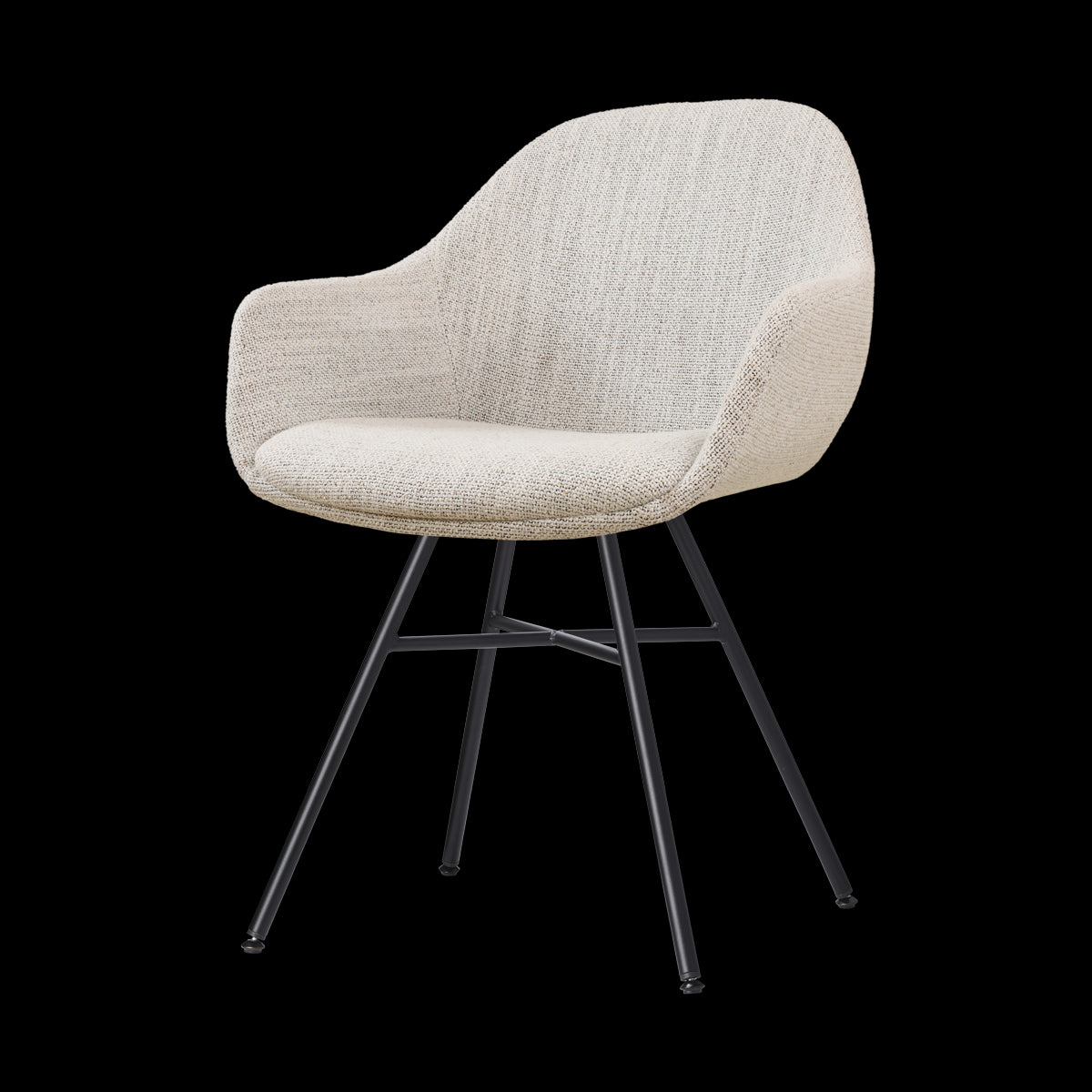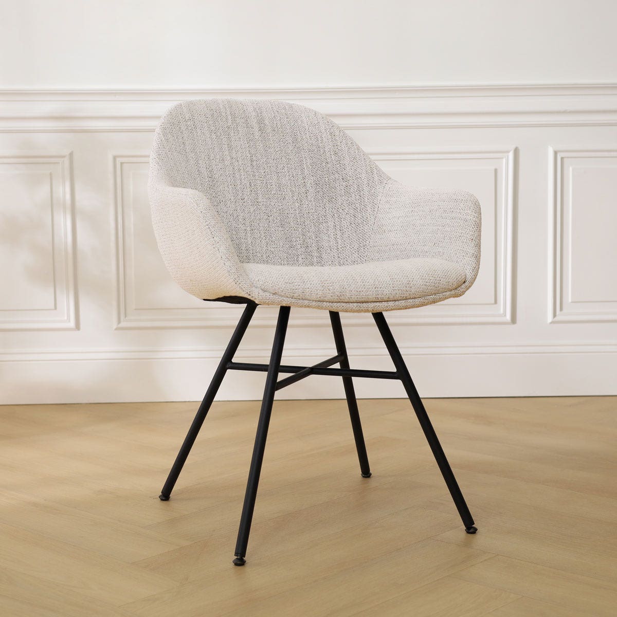 De Noa-Mae beige gemêleerde eetkamerstoel met zwarte poten van Nolon is onderdeel van een mix en match collectie. Dit betekent dat zowel het onderstel als de zitting van deze stoel in diverse andere combinaties verkrijgbaar zijn. De Mae zitting is verkrijgbaar in zes verschillende stoffen en kleuren, maar het metalen Noa onderstel kan ook gecombineerd worden met één van de andere zittingen van Nolon. De Mae zitting kan juist weer worden gecombineerd met alle andere onderstellen, zoals een draaibaar onderstel of een onderstel met houten poten.