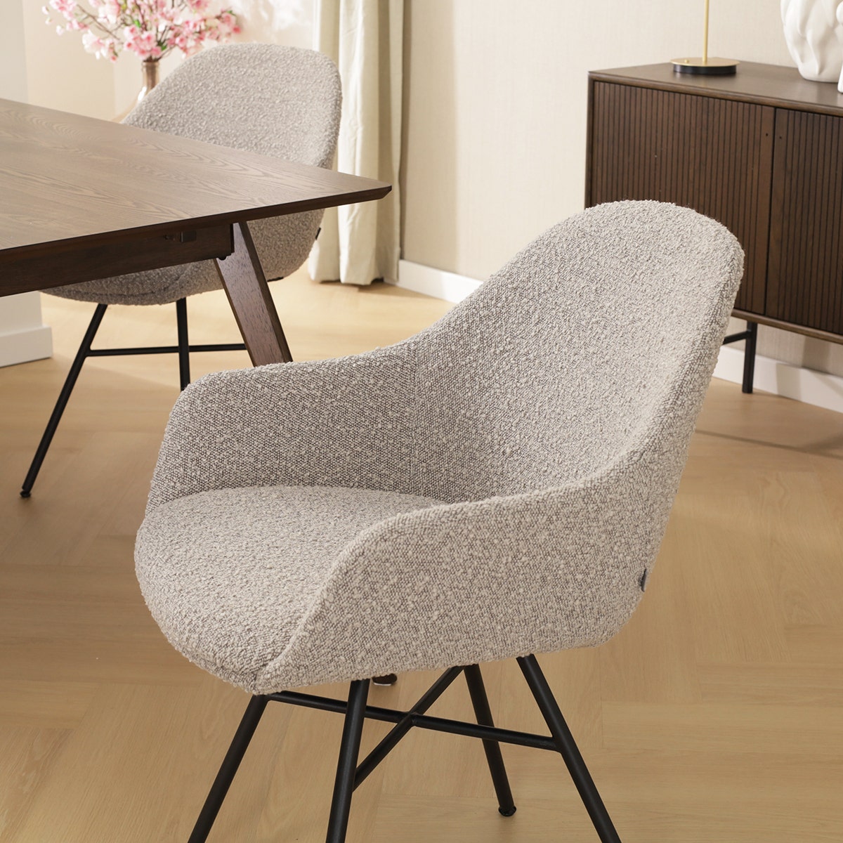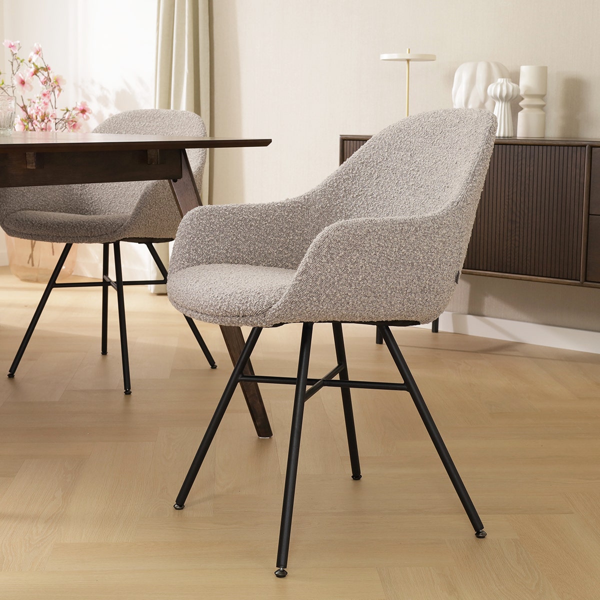 Stijlvol en comfortabel: de Noa-Mae eetkamerstoel in taupe bouclé.