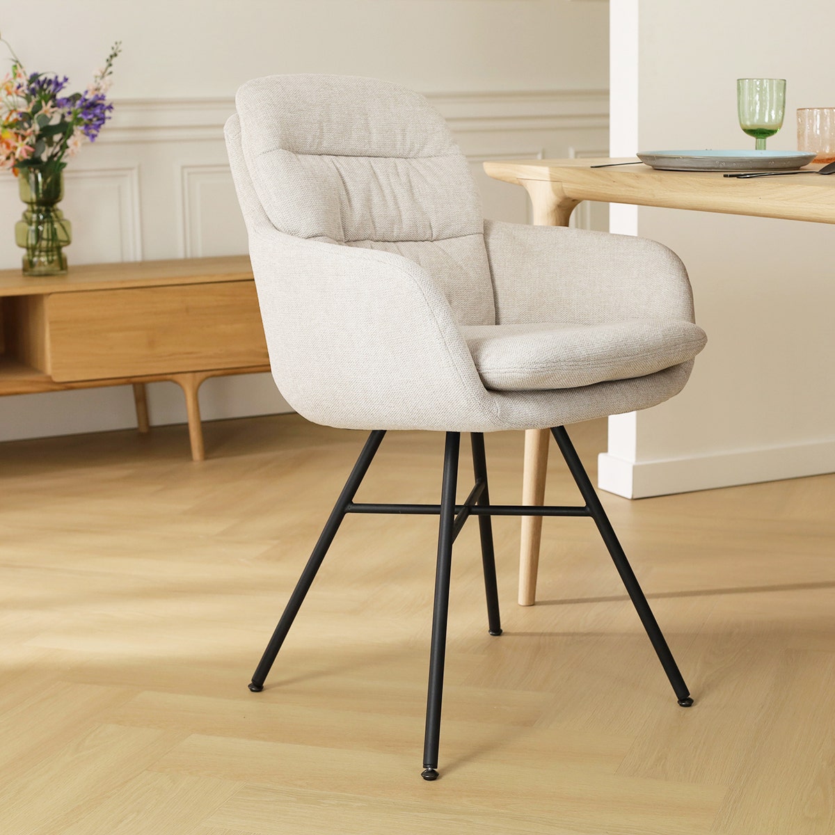 Nolon Noa-Mia Eetkamerstoel Beige - met Armleuning - Zwart