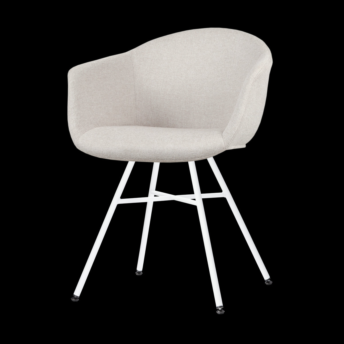 Deze eetkamerstoel heeft een moderne uitstraling dankzij de strakke lijnen van het onderstel en de contrasterende ronde vormen van de ergonomische kuipzitting. Het metalen frame met kruisverbinding is voorzien van verstelbare voetpootjes, zodat de stoel op ieder oppervlak stabiel staat. De zitting is ontworpen met schuin oplopende armleuningen om extra ondersteuning te bieden en is bekleed met hoogwaardige stof. Deze bekleding is verkrijgbaar in zes verschillende kleuren, zodat de Noa-Otis eetkamerstoel met elke woonstijl en ieder interieur te combineren is. Maak een keuze uit de beschikbare opties en voeg een vleugje moderne stijl toe aan je eethoek.