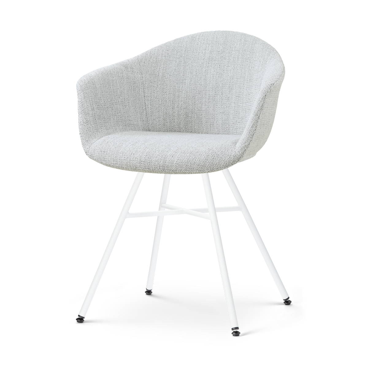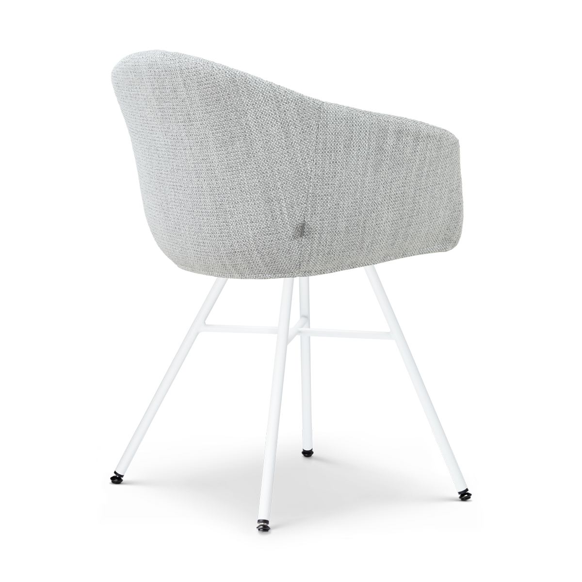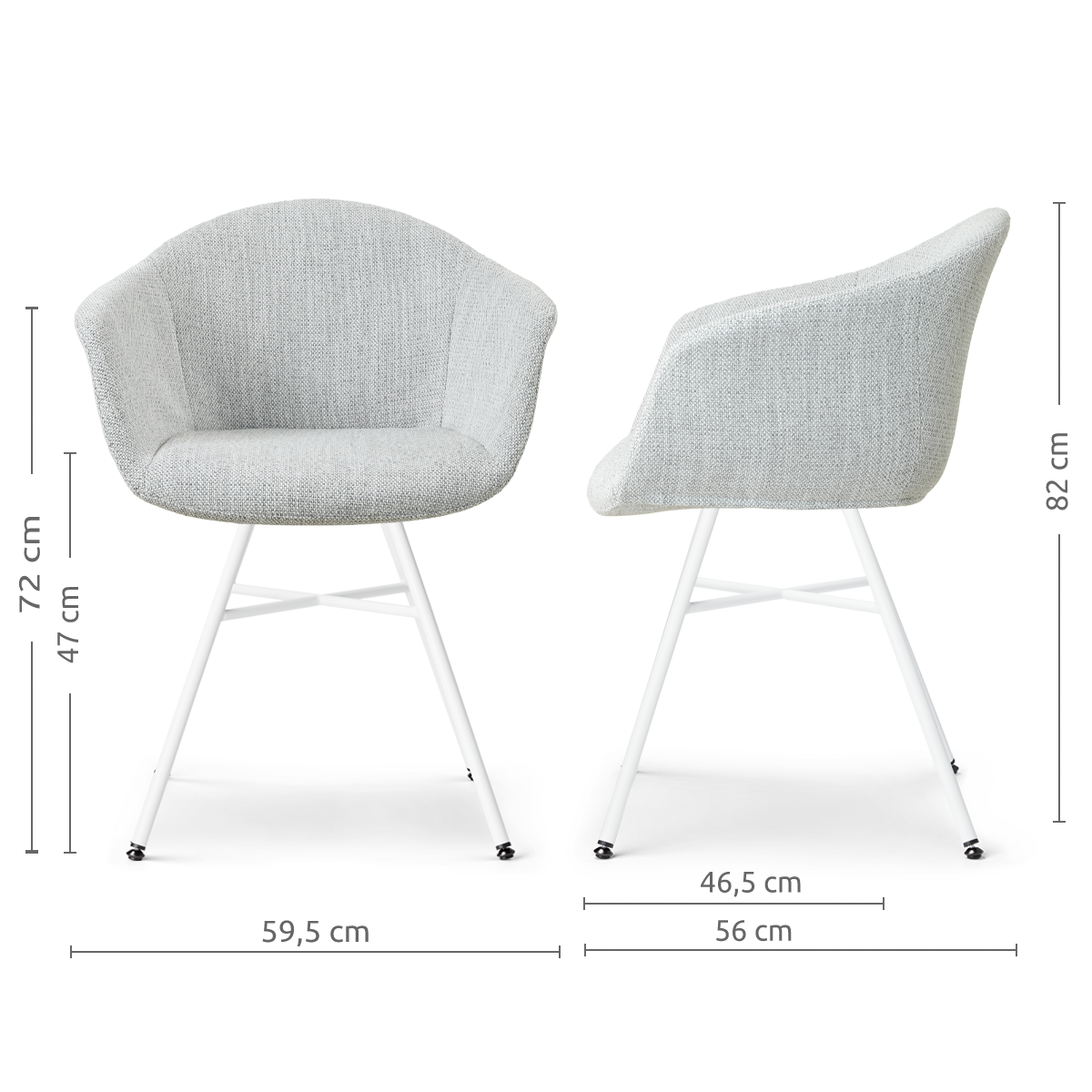 De grijs melange stoffering geeft de Noa-Otis een rustige, veelzijdige uitstraling. Het strakke witte metalen onderstel met kruisverbinding voegt een modern accent toe en zorgt voor stabiliteit. De oplopende armleuningen en comfortabele zitting maken deze stoel ideaal voor dagelijks gebruik, terwijl de verstelbare voetpootjes hem stevig houden op elke vloer.