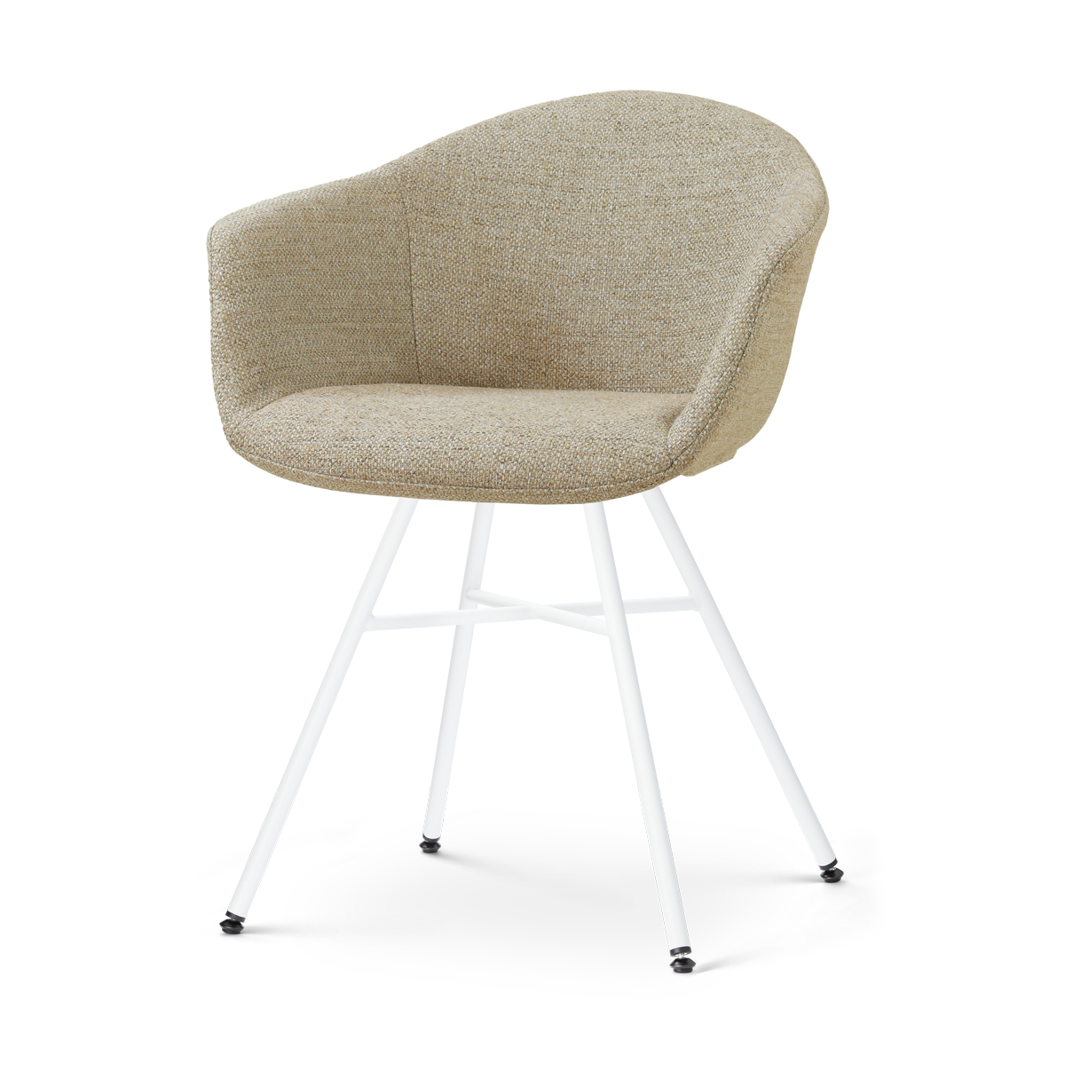 De Noa-Otis eetkamerstoel met armleuningen van Nolon is onderdeel van een mix en match collectie. Dit betekent dat zowel het onderstel als de zitting van deze stoel in diverse andere combinaties verkrijgbaar zijn. De Otis zitting is verkrijgbaar in verschillende stoffen en kleuren, maar het metalen Noa onderstel kan ook gecombineerd worden met één van de andere zittingen van Nolon. De Otis zitting kan juist weer worden gecombineerd met alle andere onderstellen, zoals een draaibaar onderstel of een onderstel met houten poten.