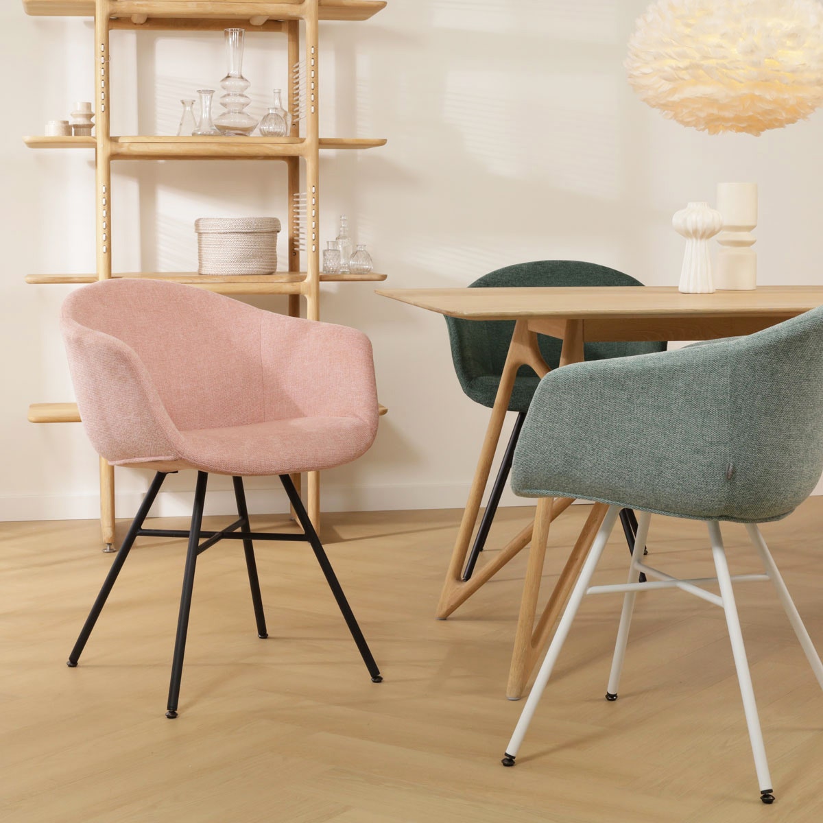 De stoffen eetkamerstoel Noa-Otis van Nolon is een geweldige toevoeging aan jouw eettafel.