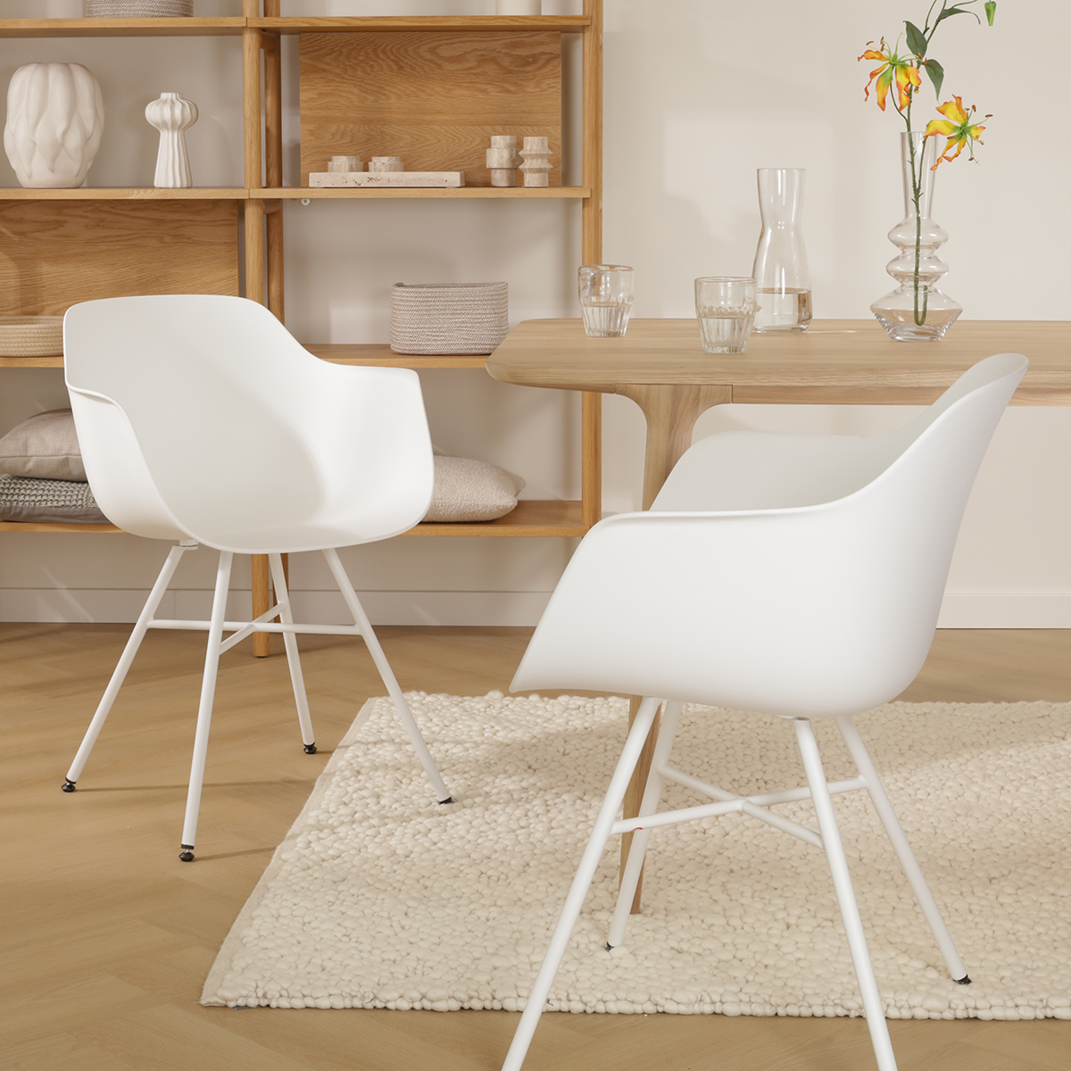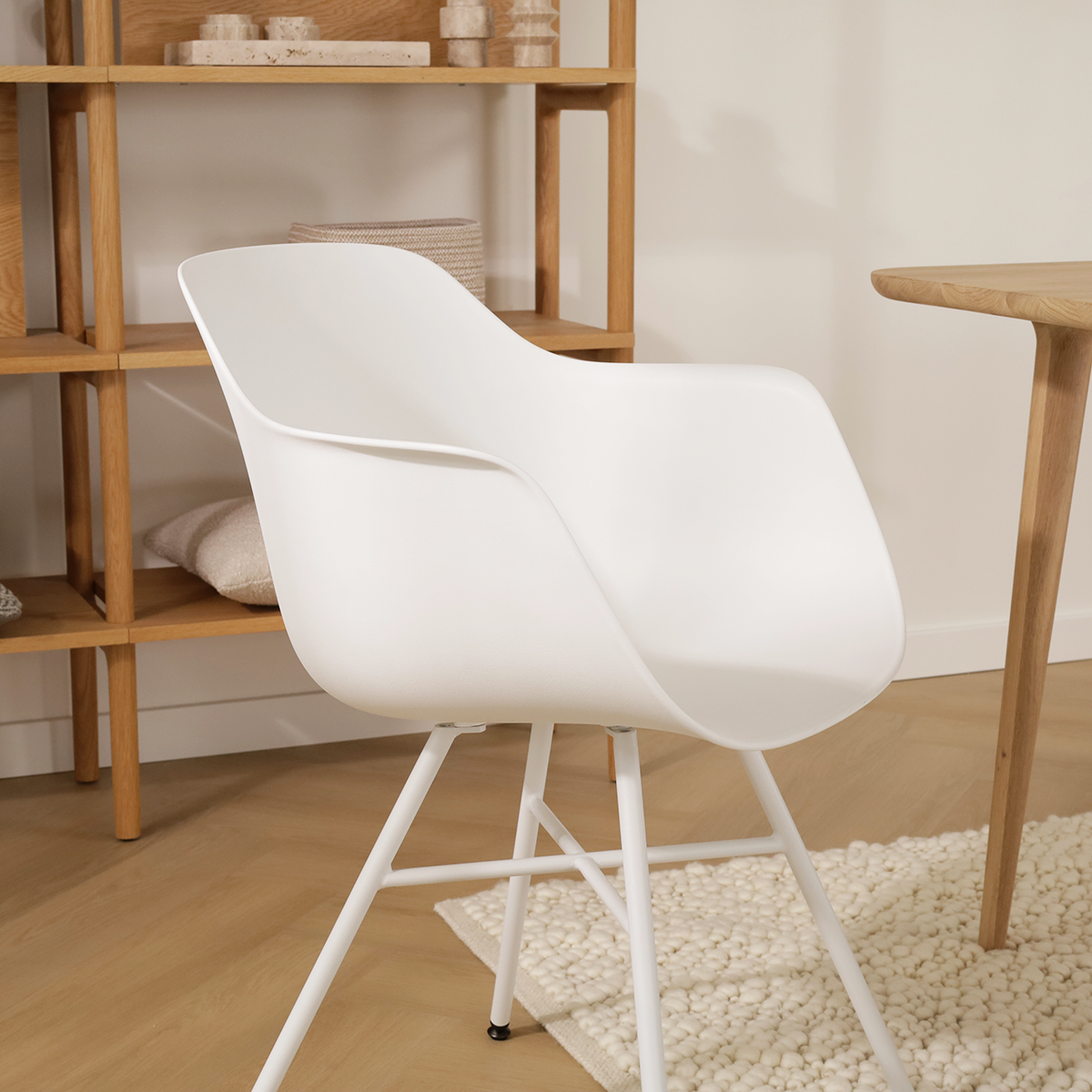 Nolon Noa-Puk Eetkamerstoel Wit - met Armleuning - Wit Onderstel