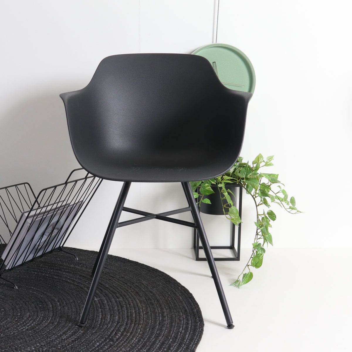 Deze stoel combineert stijl met functionaliteit, waardoor hij niet alleen een eyecatcher in de eethoek is, maar ook comfort biedt tijdens lange maaltijden of gezellige avonden. De zitting van de eetkamerstoel is vervaardigd uit hoogwaardig kunststof, wat ervoor zorgt dat deze stoel erg onderhoudsvriendelijk is en geschikt is voor intensief gebruik. De ergonomische vorm en de comfortabele armleuningen zorgen voor een ontspannen zitervaring, waardoor je met plezier aan tafel blijft zitten na de maaltijd. Het metalen onderstel met kruisverbinding maakt het moderne karakter van deze kunststof eetkamerstoel compleet en is zowel in zwart als in wit te kiezen. De kunststof zitting is eveneens in zwart en wit beschikbaar. Kies jouw perfecte combinatie en geniet van comfortabele diners op de Noa-Puk eetkamerstoel van Nolon. Wil je graag iets zachter zitten? Het Fem stoelkussen van Nolon sluit perfect aan op de zitting van deze stoel.