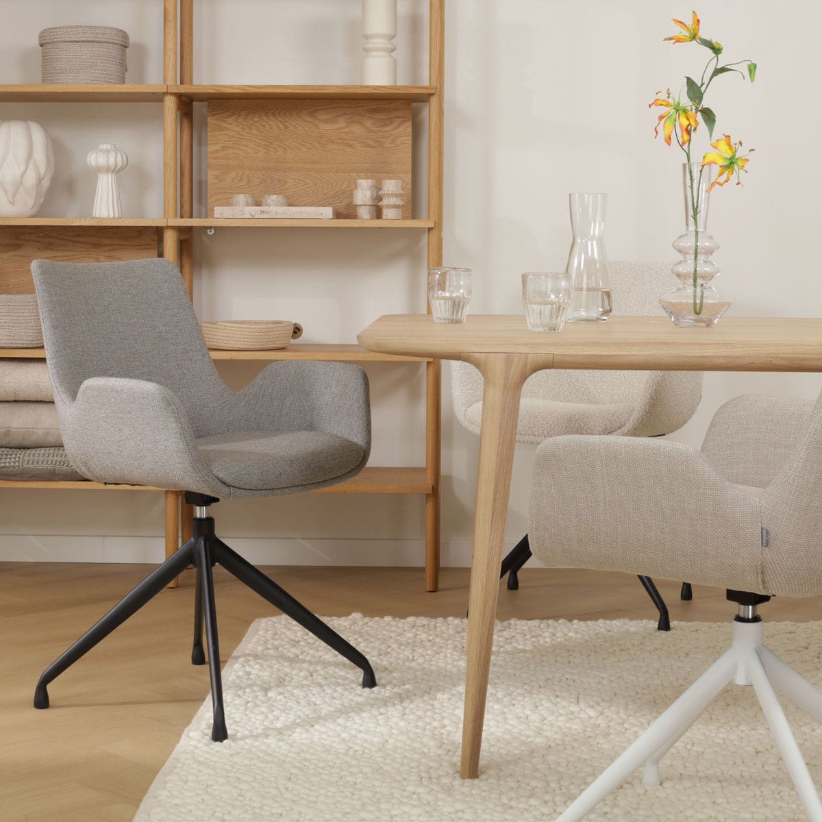Met de Nola-Eef draaibare eetkamerstoel van Nolon is urenlang comfortabel tafelen gegarandeerd.