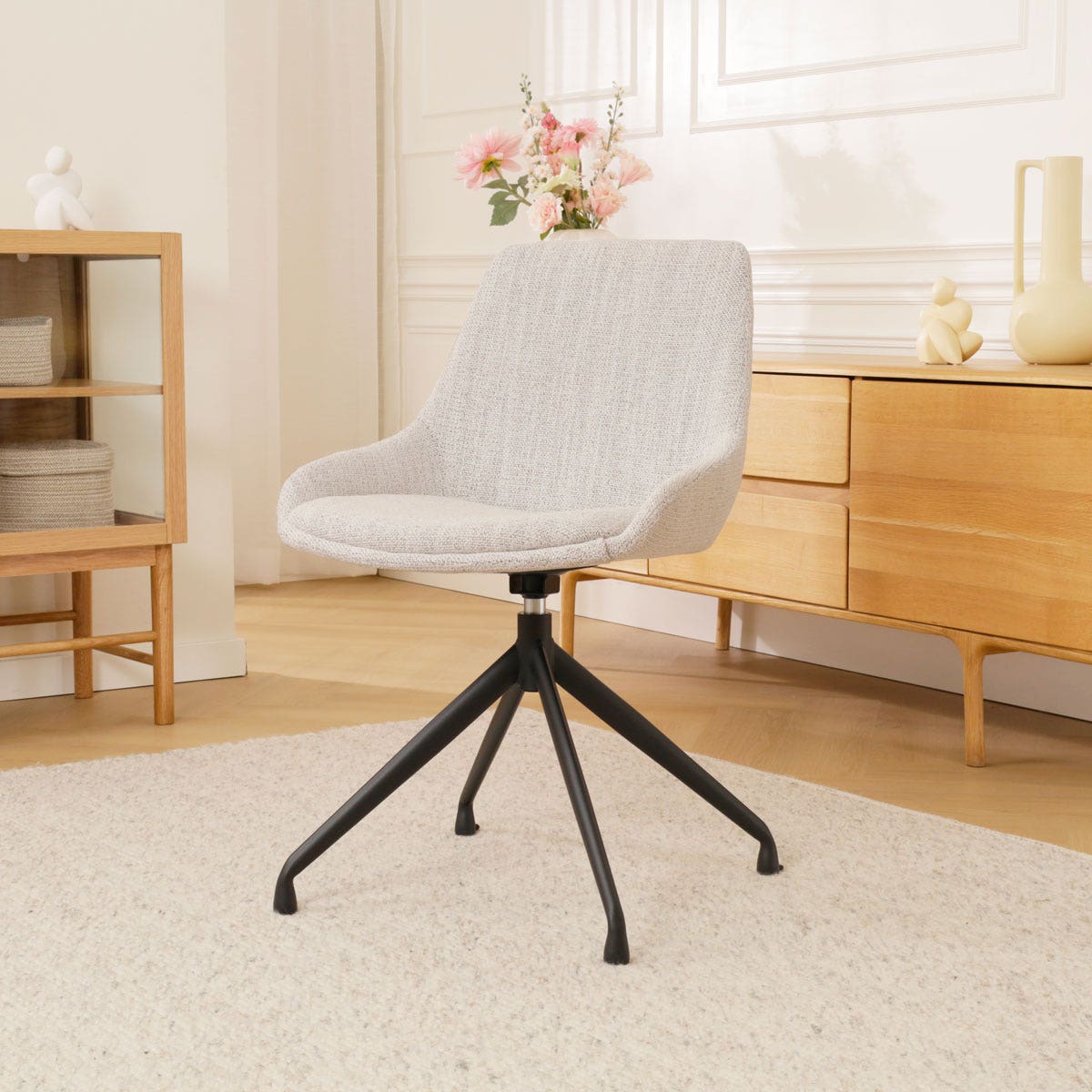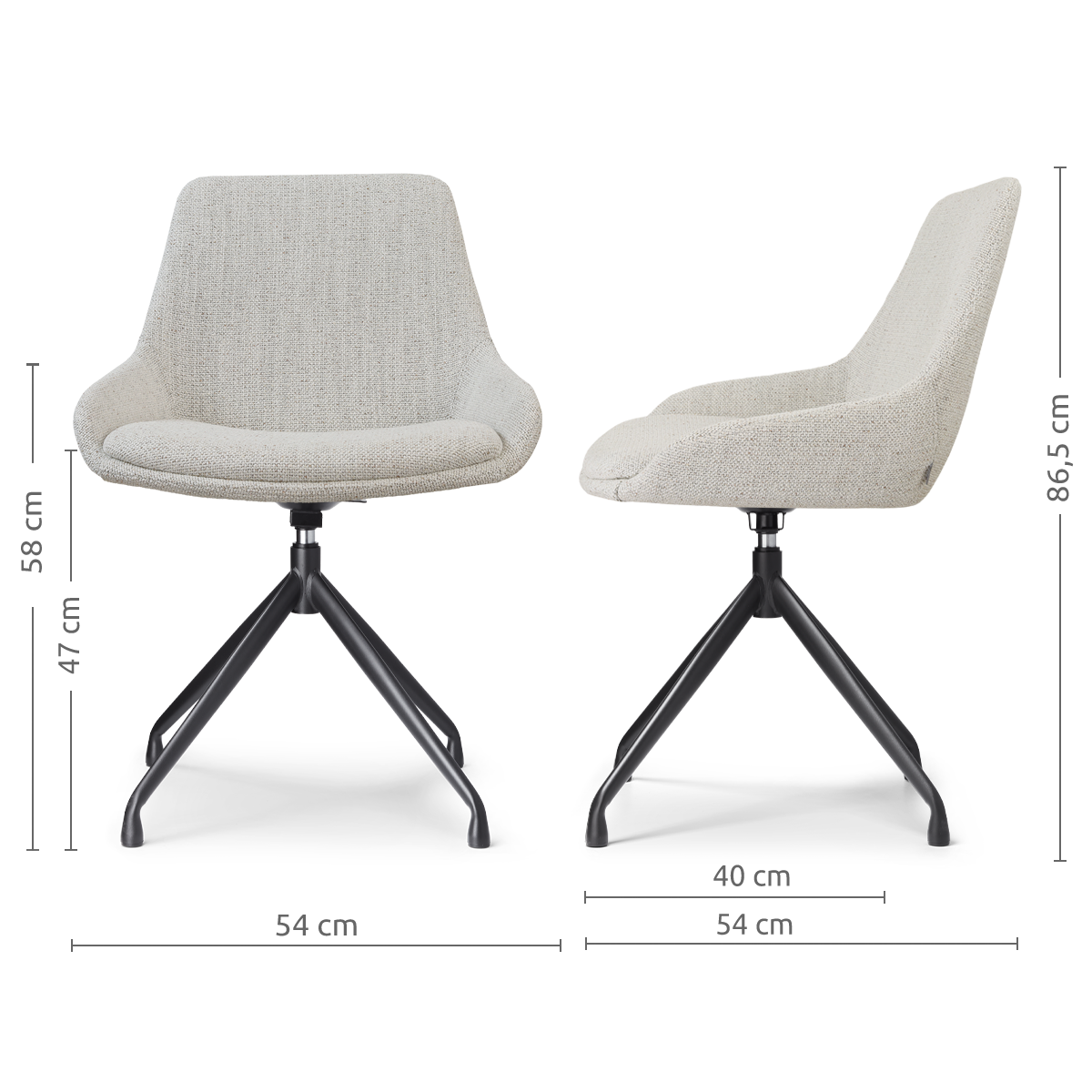 De eetkamerstoel heeft een comfortabele zitting met een sterk houten binnenwerk, waardoor je rug veel ondersteuning krijgt en je gemakkelijk een actieve zithouding aanneemt. Het gevoerde zitvlak zorgt voor veel comfort, evenals de zachte stoffen bekleding. Het metalen onderstel heeft een draaimechanisme, waardoor de zitting 360 graden op het onderstel kan draaien. Dit maakt van de Nola-Isa een uiterst functionele en flexibele stoel aan de eettafel. Maak een keuze uit de verschillende kleuren en materialen zitting, waaronder het trendy en onderhoudsvriendelijke bouclé stof, aan de hand van jouw persoonlijke smaak. De combinatie van het strakke ontwerp en de warme kleuropties van de bekleding geeft deze stoel een tijdloze, elegante uitstraling die bij elke inrichting past.