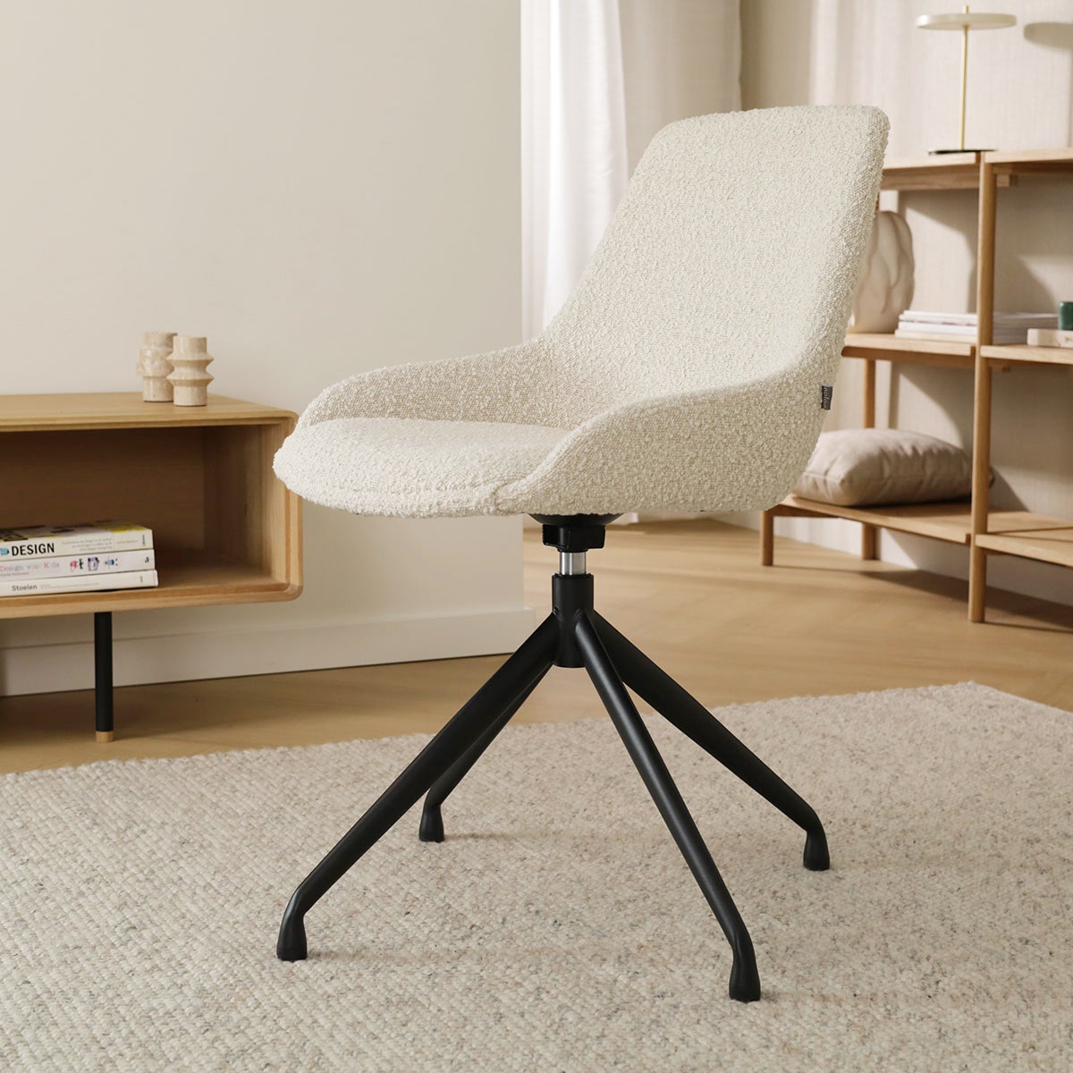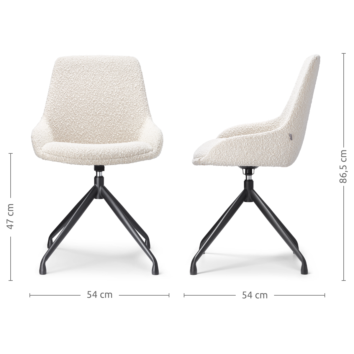 De eetkamerstoel heeft een comfortabele zitting met een sterk houten binnenwerk, waardoor je rug veel ondersteuning krijgt en je gemakkelijk een actieve zithouding aanneemt. Het gevoerde zitvlak zorgt voor veel comfort, evenals de zachte stoffen bekleding. Het metalen onderstel heeft een draaimechanisme, waardoor de zitting 360 graden op het onderstel kan draaien. Dit maakt van de Nola-Isa een uiterst functionele en flexibele stoel aan de eettafel. Maak een keuze uit de verschillende kleuren en materialen zitting, waaronder het trendy en onderhoudsvriendelijke bouclé stof, aan de hand van jouw persoonlijke smaak. De combinatie van het strakke ontwerp en de warme kleuropties van de bekleding geeft deze stoel een tijdloze, elegante uitstraling die bij elke inrichting past.
