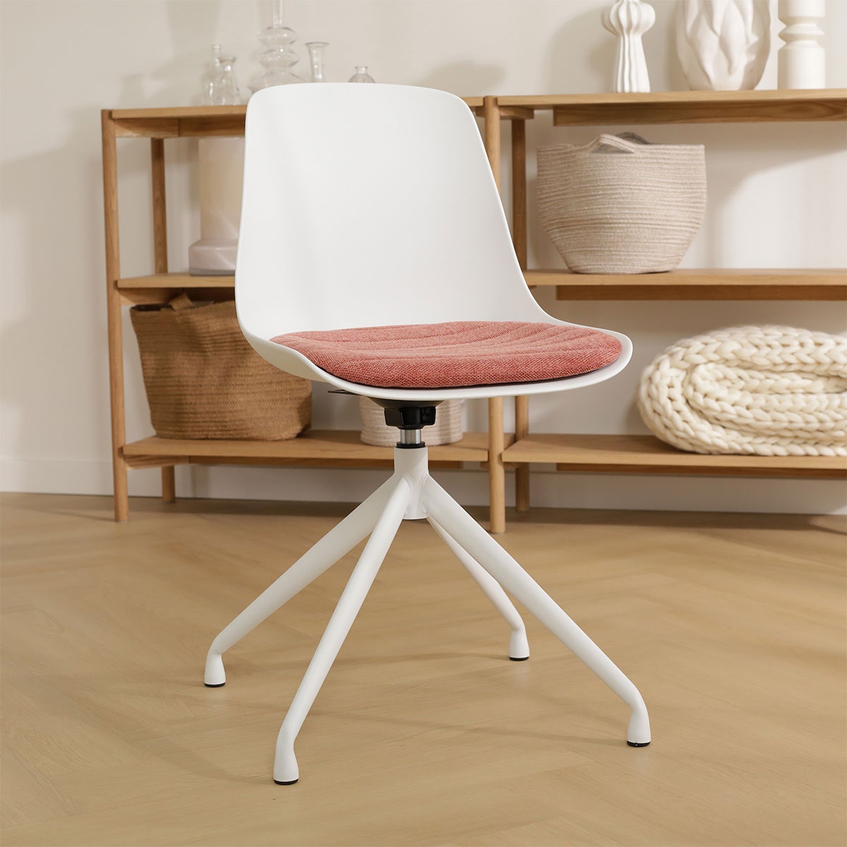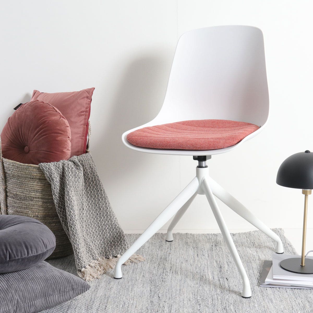 De eetkamerstoel heeft een modern draaibaar onderstel gemaakt van metaal. De zitting is gemaakt van door en door gekleurd kunststof, waardoor de stoel uiterst geschikt is voor inetnsief gebruik. De zitting draait 360 graden op het onderstel, zodat je de stoel niet ver naar achteren hoeft te schuiven om plaats te kunnen nemen. Ook aan het diner zorgt deze draaifunctie voor flexibiliteit. Om een uitstekend zitcomfort te bieden is de Nola-Liv eetkamerstoel niet alleen ontworpen met ergnomische vormen, het zitvlak van de stoel is voorzien van een vast zitkussen bekleed met zachte stof. Hierdoor zit je extra zacht en is urenlang natafelen of uitgebreid dineren op deze kunststof eetkamerstoel geen enkel probleem. Maak een keuze uit de zwarte of witte zitting en kies vervolgens uit één van de vijf beschikbare kleuren zitkussen om deze eetkamerstoel helemaal aan jouw eethoek aan te passen.