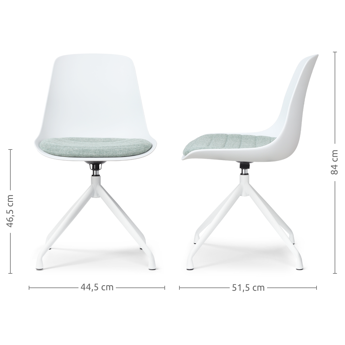 De eetkamerstoel heeft een modern draaibaar onderstel gemaakt van metaal. De zitting is gemaakt van door en door gekleurd kunststof, waardoor de stoel uiterst geschikt is voor inetnsief gebruik. De zitting draait 360 graden op het onderstel, zodat je de stoel niet ver naar achteren hoeft te schuiven om plaats te kunnen nemen. Ook aan het diner zorgt deze draaifunctie voor flexibiliteit. Om een uitstekend zitcomfort te bieden is de Nola-Liv eetkamerstoel niet alleen ontworpen met ergnomische vormen, het zitvlak van de stoel is voorzien van een vast zitkussen bekleed met zachte stof. Hierdoor zit je extra zacht en is urenlang natafelen of uitgebreid dineren op deze kunststof eetkamerstoel geen enkel probleem. Maak een keuze uit de zwarte of witte zitting en kies vervolgens uit één van de vijf beschikbare kleuren zitkussen om deze eetkamerstoel helemaal aan jouw eethoek aan te passen.