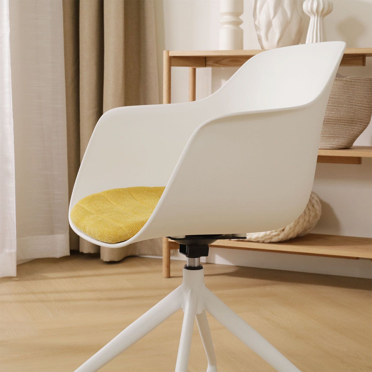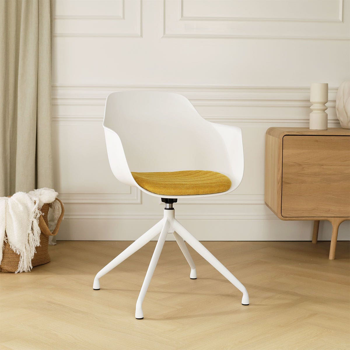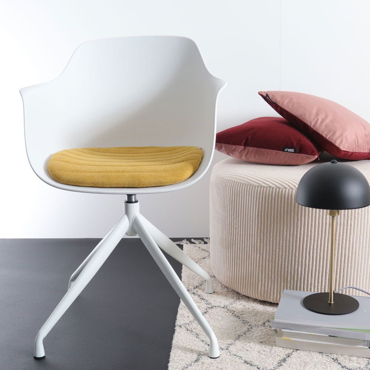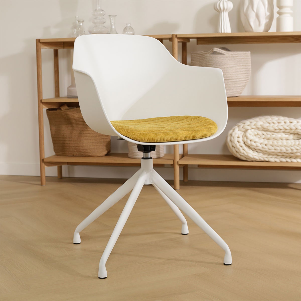 De Nola draaibare eetkamerstoel met een kunststof zitting met armleuningen is een mooie elegante stoel die als blikvanger dient rondom je eettafel.