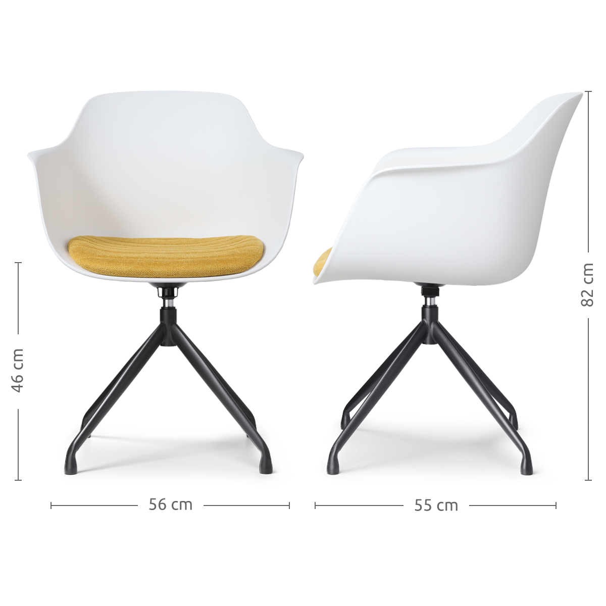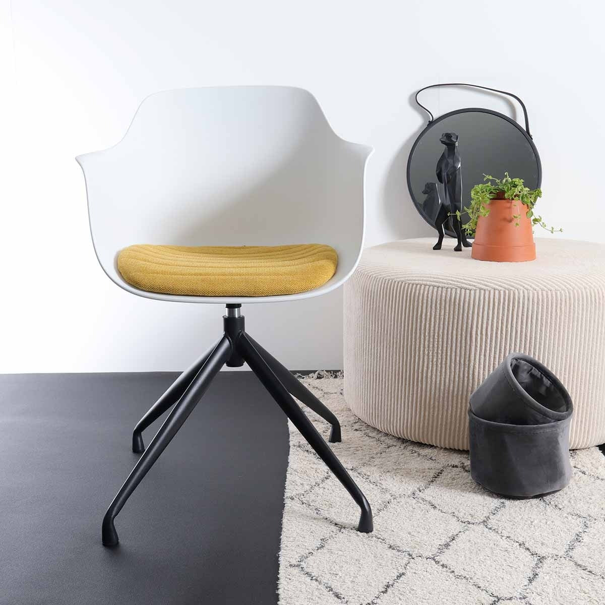Nolon Nola-Liz Eetkamerstoel Wit - Okergeel - Draaibaar - Zwart