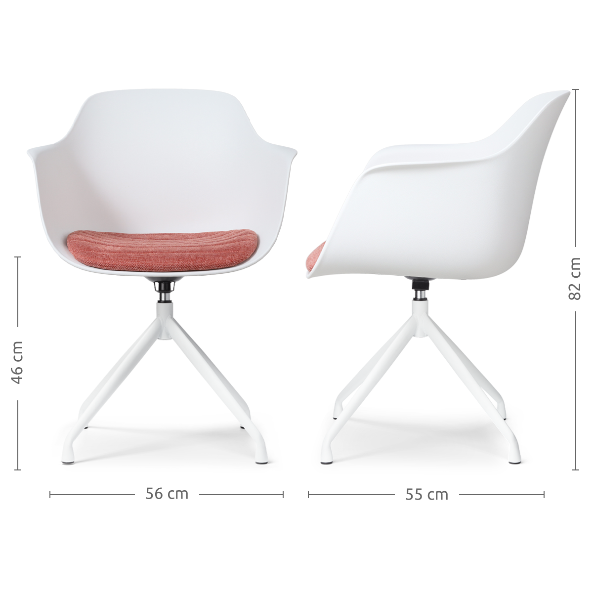 De Nola draaibare eetkamerstoel met een kunststof zitting met armleuningen is een mooie elegante stoel die als blikvanger dient rondom je eettafel.