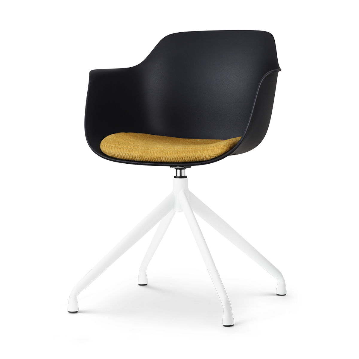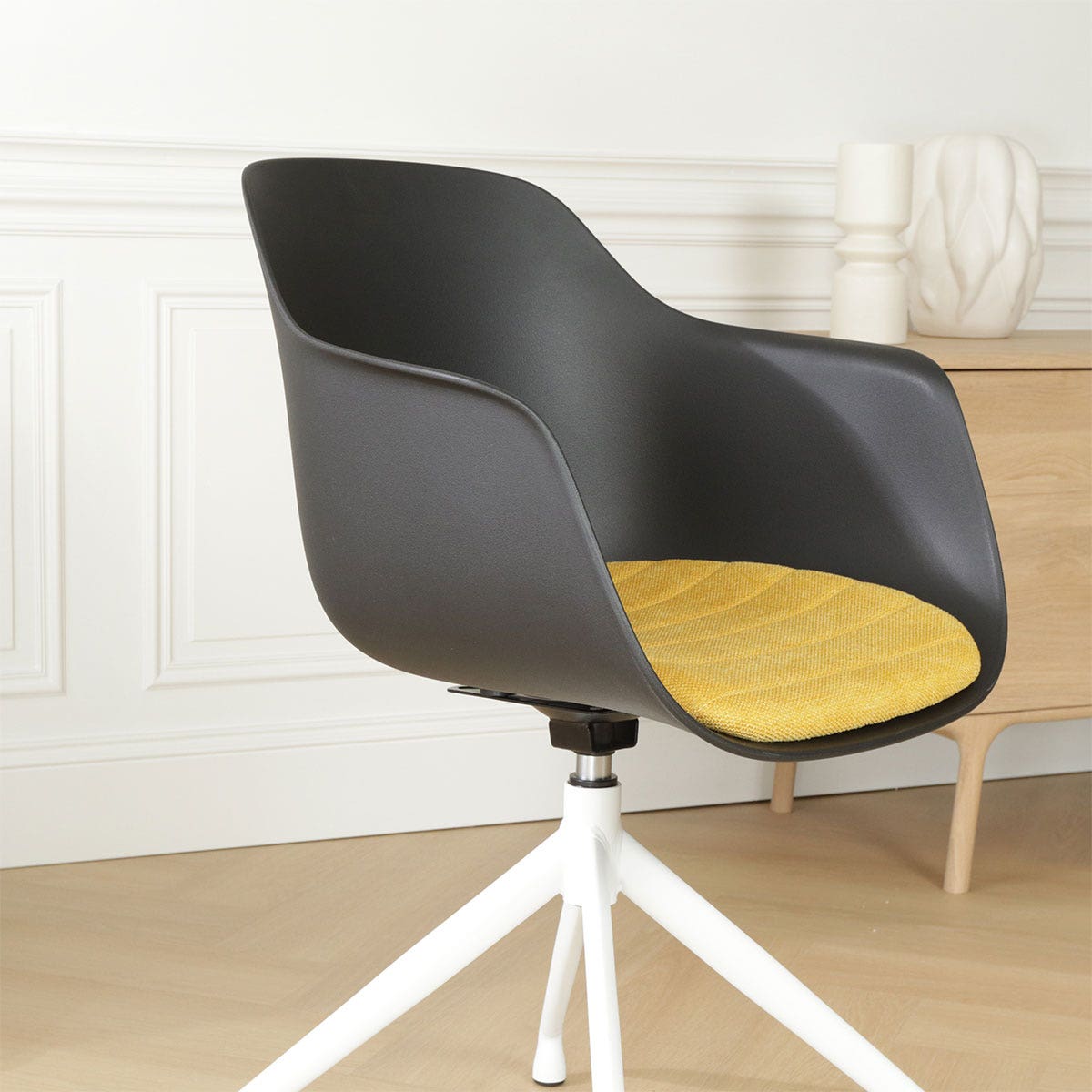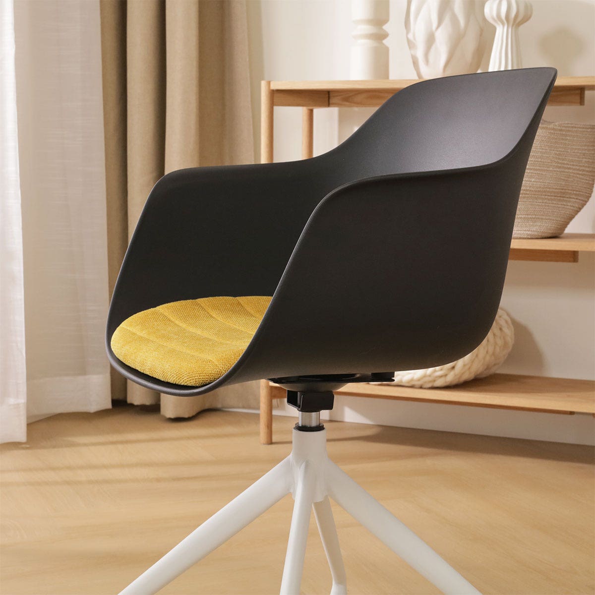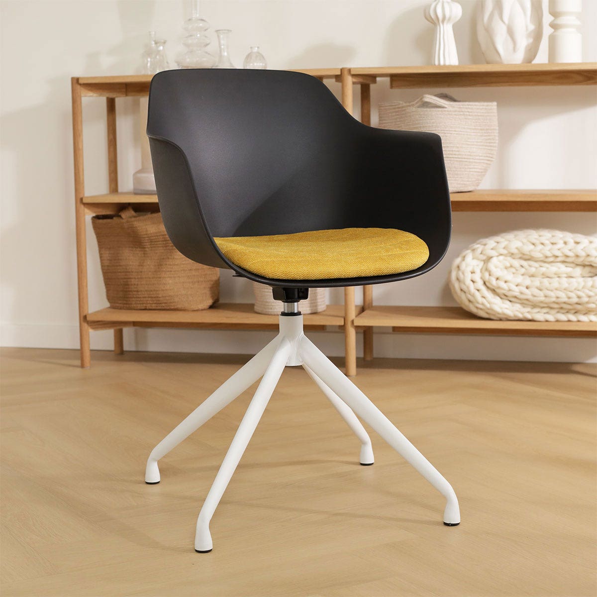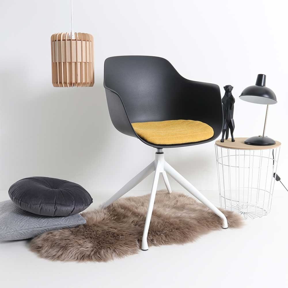 De Nola draaibare eetkamerstoel met een kunststof zitting met armleuningen is een mooie elegante stoel die als blikvanger dient rondom je eettafel.