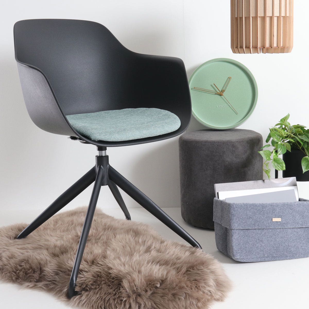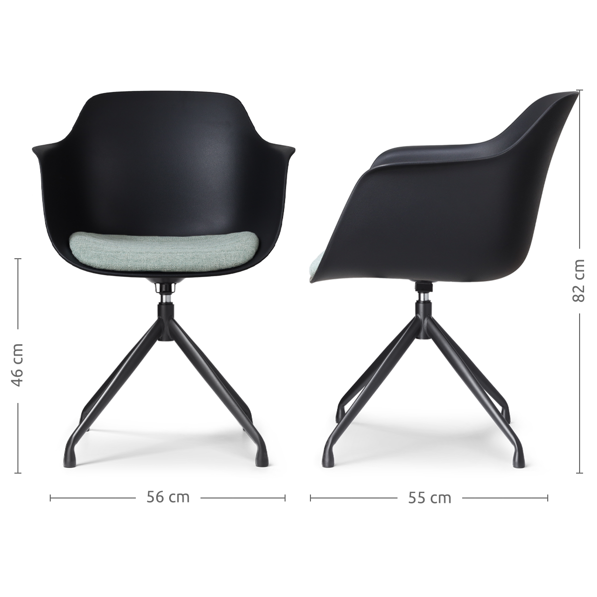 Nolon Nola-Liz Eetkamerstoel Zwart - Zacht Groen - Draaibaar - Zwart