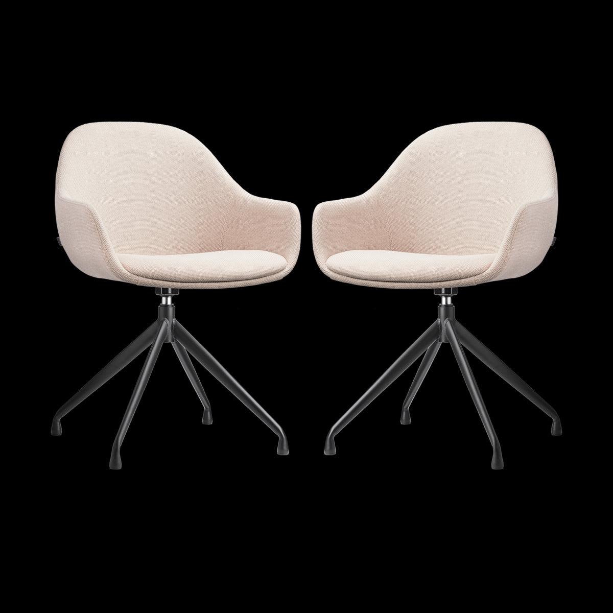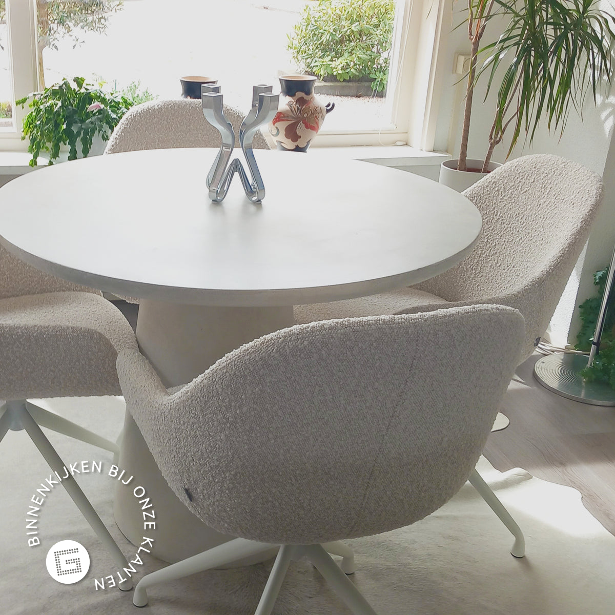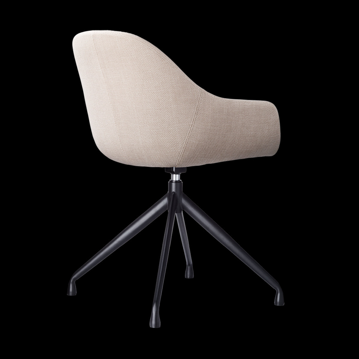 De Nola-Mae wordt gekenmerkt door zachte lijnen en subtiele rondingen van de zitting, wat bijdraagt aan het warme en uitnodigende karakter van de stoel. De zitting is verkrijgbaar in zowel luxe stof als bouclé, waardoor je altijd zacht zit. De schuin aflopende armleuningen zorgen hierbij voor extra ondersteuning en een ontspannen zithouding. Het stevige houten binnenwerk van de zitting biedt veel steun aan de rug. De Nola-Mae eetkamerstoel is ontworpen met een draaibaar metalen onderstel, wat de stoel veelzijdig en handig in gebruik maakt. Hierdoor hoef je namelijk minder te schuiven met de stoel en kan je gemakkelijk in- en uitstappen.