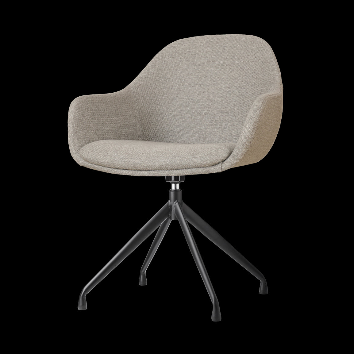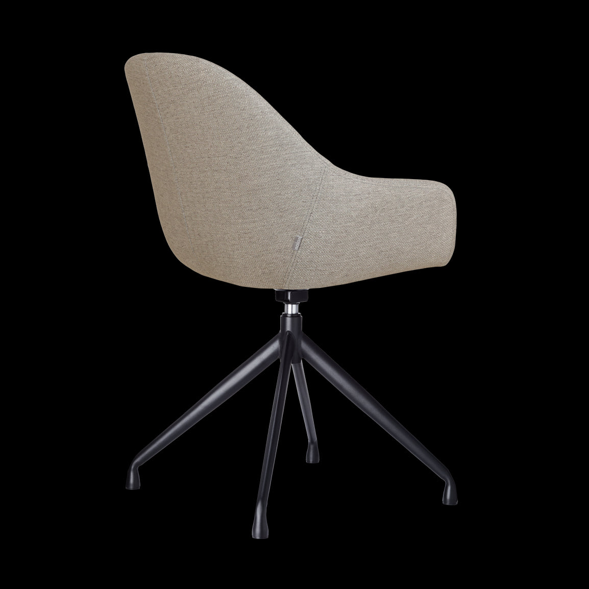 De Nola-Mae draaibare eetkamerstoel in warm grijs met zwarte metalen poten combineert Scandinavisch design met modern comfort. Deze stoel is ontworpen voor wie een luxe uitstraling wil in de eetkamer zonder concessies te doen aan gebruiksgemak. De gestoffeerde zitting met vast zitkussen en subtiele rondingen biedt een aangename zitervaring. De aflopende armleuningen zorgen voor extra ondersteuning, terwijl het stevige binnenwerk van de zitting zorgt voor een goede rugsteun. Met zijn draaibare onderstel zonder terugdraaimechanisme is deze stoffen eetkamerstoel niet alleen elegant, maar ook praktisch in gebruik. Je draait eenvoudig in en uit de stoel, zonder deze te hoeven verschuiven. De warme grijze bekleding straalt een tijdloze klasse uit en voelt prettig aan. Het duurzame metalen frame in zwart maakt de stoel geschikt voor uiteenlopende interieurstijlen, van modern tot industrieel.