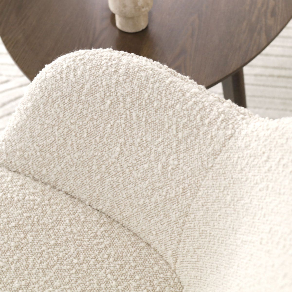 - De beige bouclé stof straalt warmte uit en zorgt voor een warme sfeer