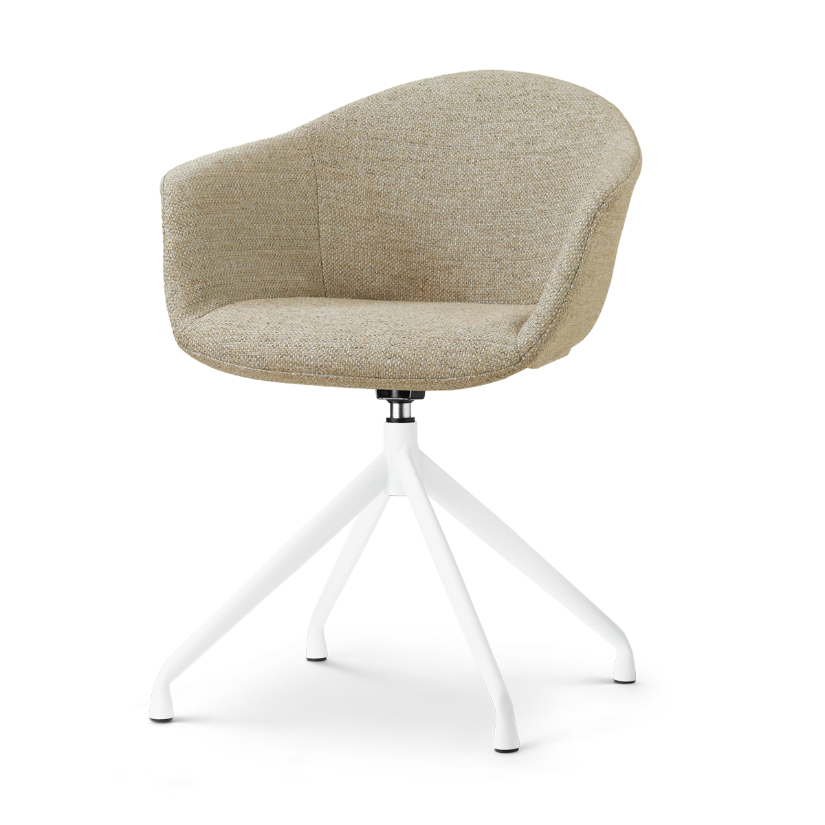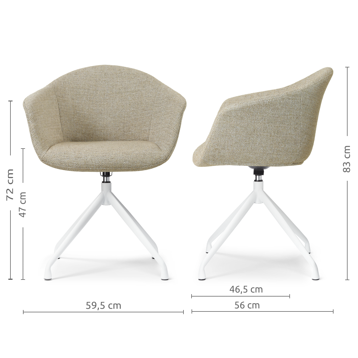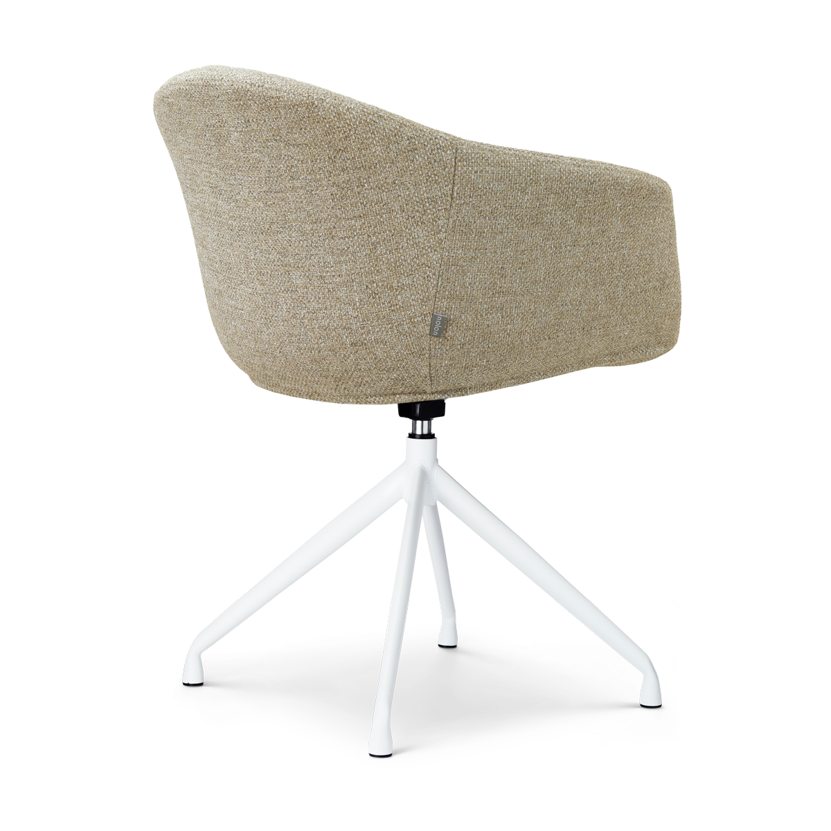De Nola-Otis met taupekleurige zitting en oplopende armleuningen biedt comfort en een eigentijdse uitstraling. Het witte draaibare Nola-onderstel maakt het eenvoudig om van positie te wisselen, bijvoorbeeld tijdens een gezellig diner of werkmoment. De minimalistische en lichte look past perfect bij een Japandi of Scandinavisch interieur.