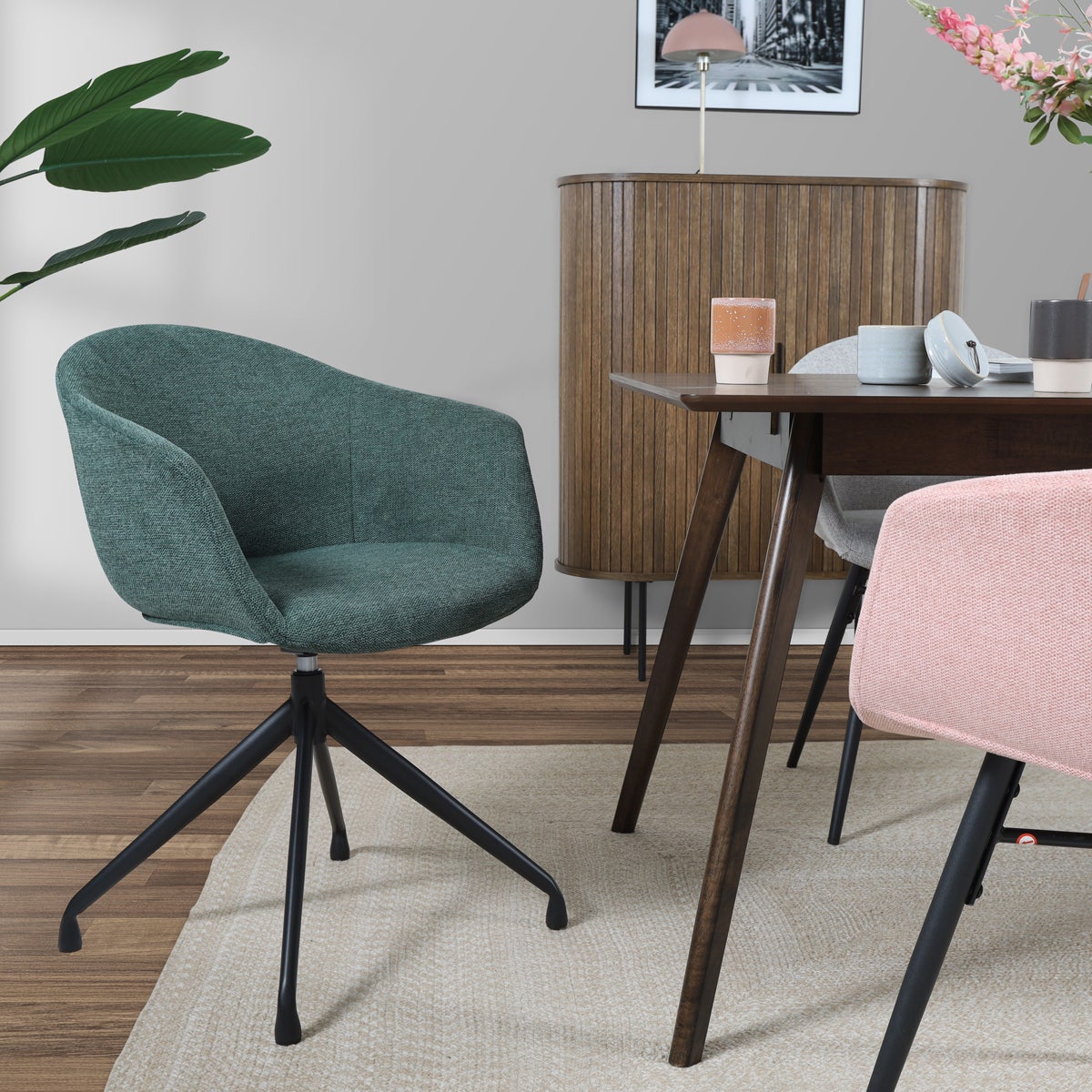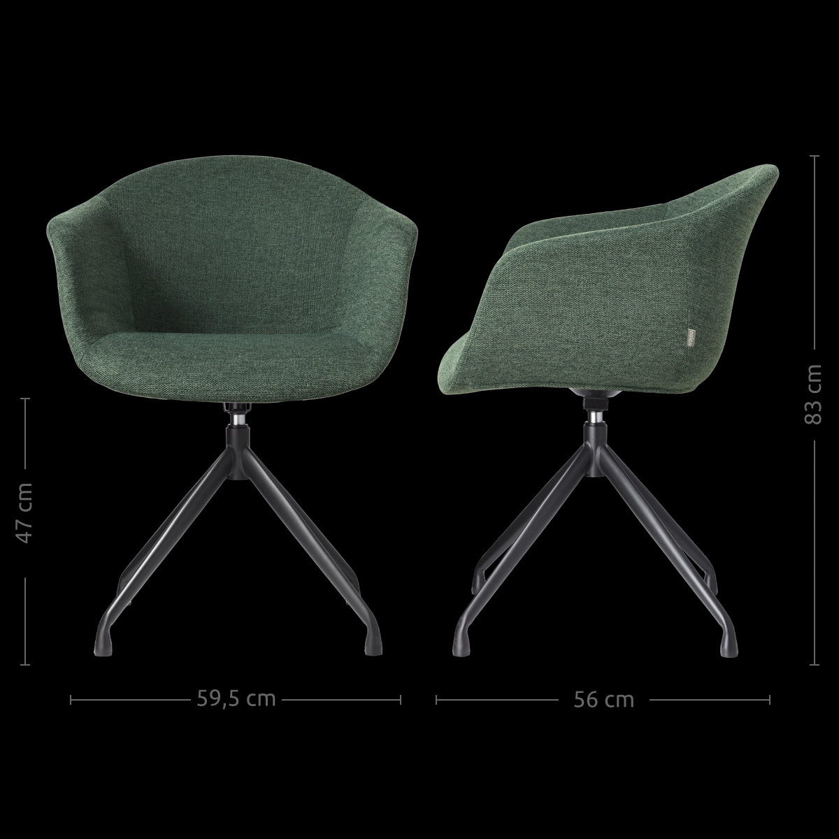 Nolon Nola-Otis Draaibare Eetkamerstoelen Set - Donkergroen - Zwart