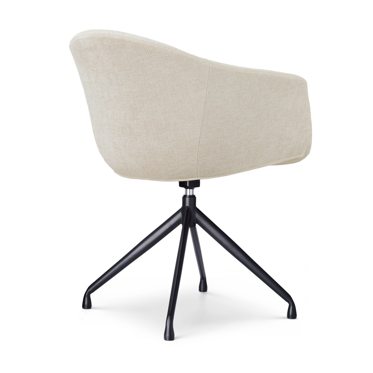 De warme beige stoffering van de Nola-Otis vormt een zachte, luxe uitstraling. Het draaibare witte onderstel maakt in- en uitstappen bijzonder eenvoudig en biedt extra flexibiliteit aan je eetkamer of bureau. De oplopende armleuningen en comfortabele zitting zorgen voor urenlang prettig zitcomfort.