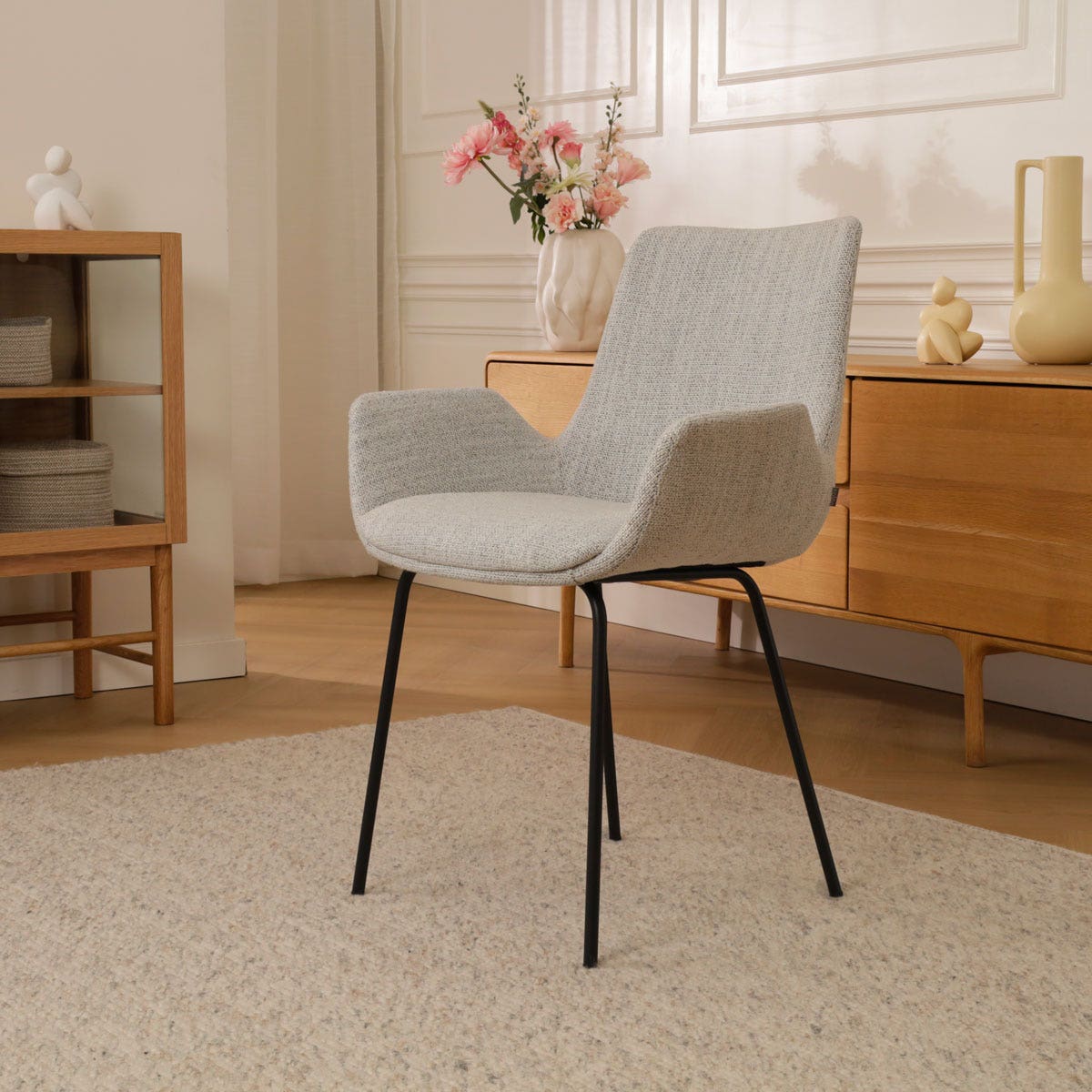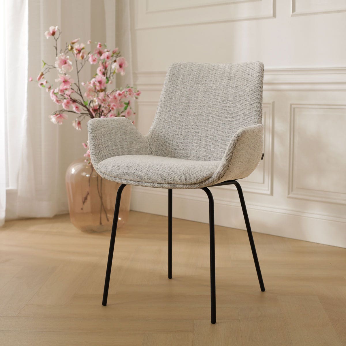 Nolon Nora-Eef Eetkamerstoel Beige Gemêleerd - met Armleuning - Zwart