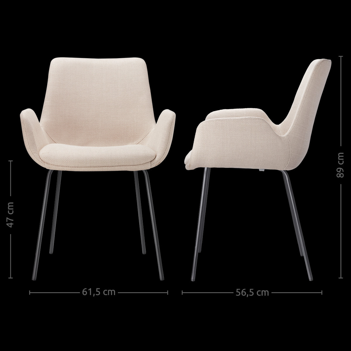 Deze eetkamerstoel is ontworpen met een rank metalen frame dat verkrijgbaar is in zwart en wit. De zitting heeft een stevige rugleuning en armleuningen voor een hoog zitcomfort. Zo kan je zorgeloos genieten van gezellige diners en bijeenkomsten. De armleuningen van deze eetkamerstoel zijn iets lager dan normaal, zodat beter onder de eettafel passen. De Nora-Eef is verkrijgbaar met een zitting in twee verschillende kleuren en materialen, waaronder bouclé stof. Dit populaire materiaal zorgt dankzij de rijke textuur voor de ultieme warme sfeer in de eethoek en is daarnaast ook nog eens extra onderhoudsvriendelijk. Heb je liever een eetkamerstoel met een tijdloze uitstraling? De zitting is ook verkrijgbaar met een luxe beige stof. Welke variant je ook kiest, de Nora-Eef eetkamerstoel is altijd een goede keuze.